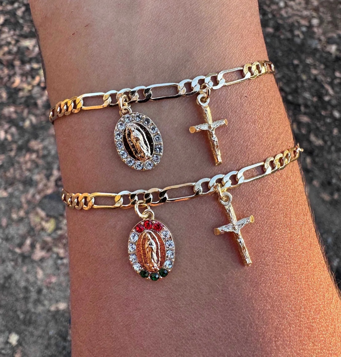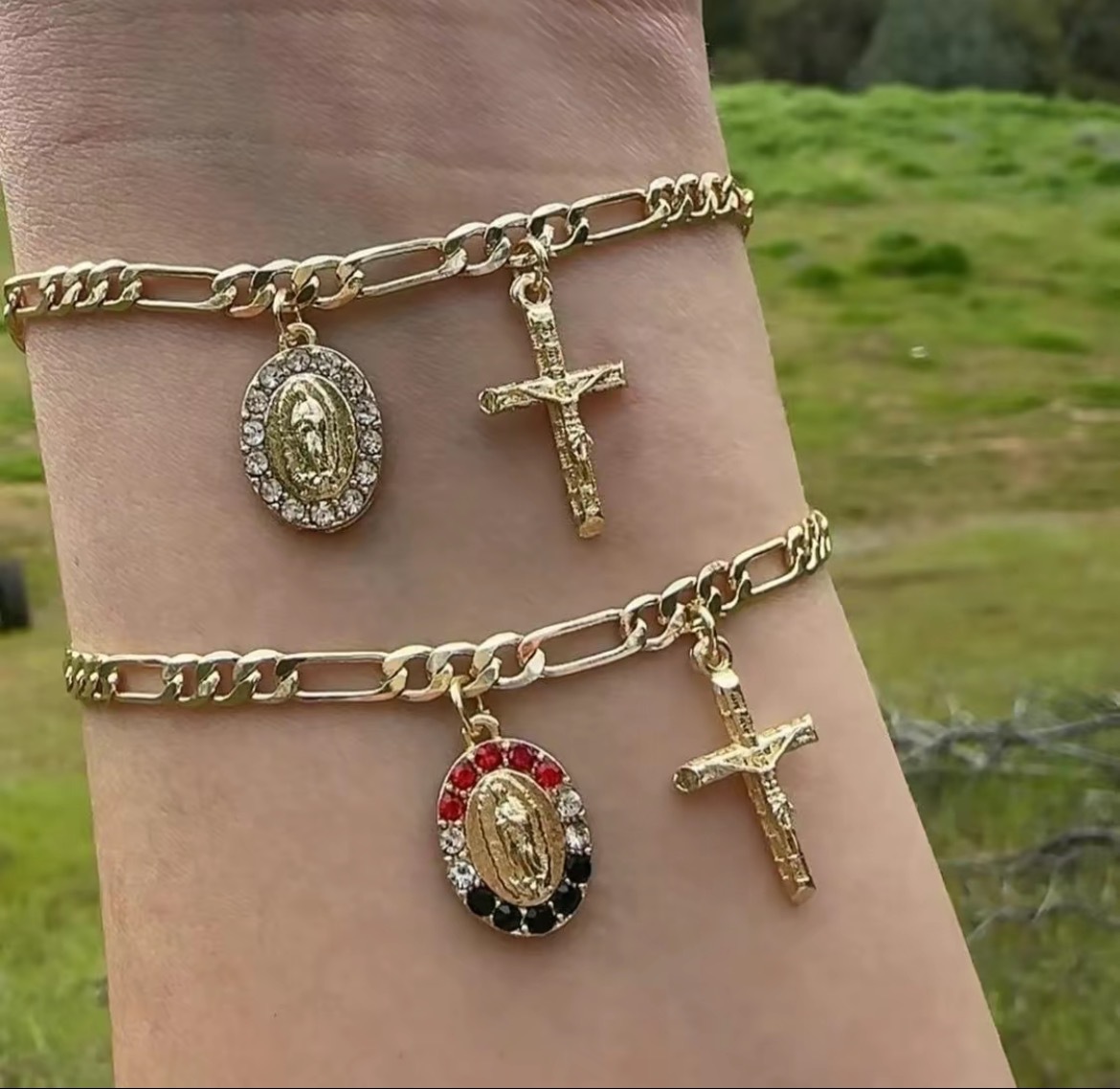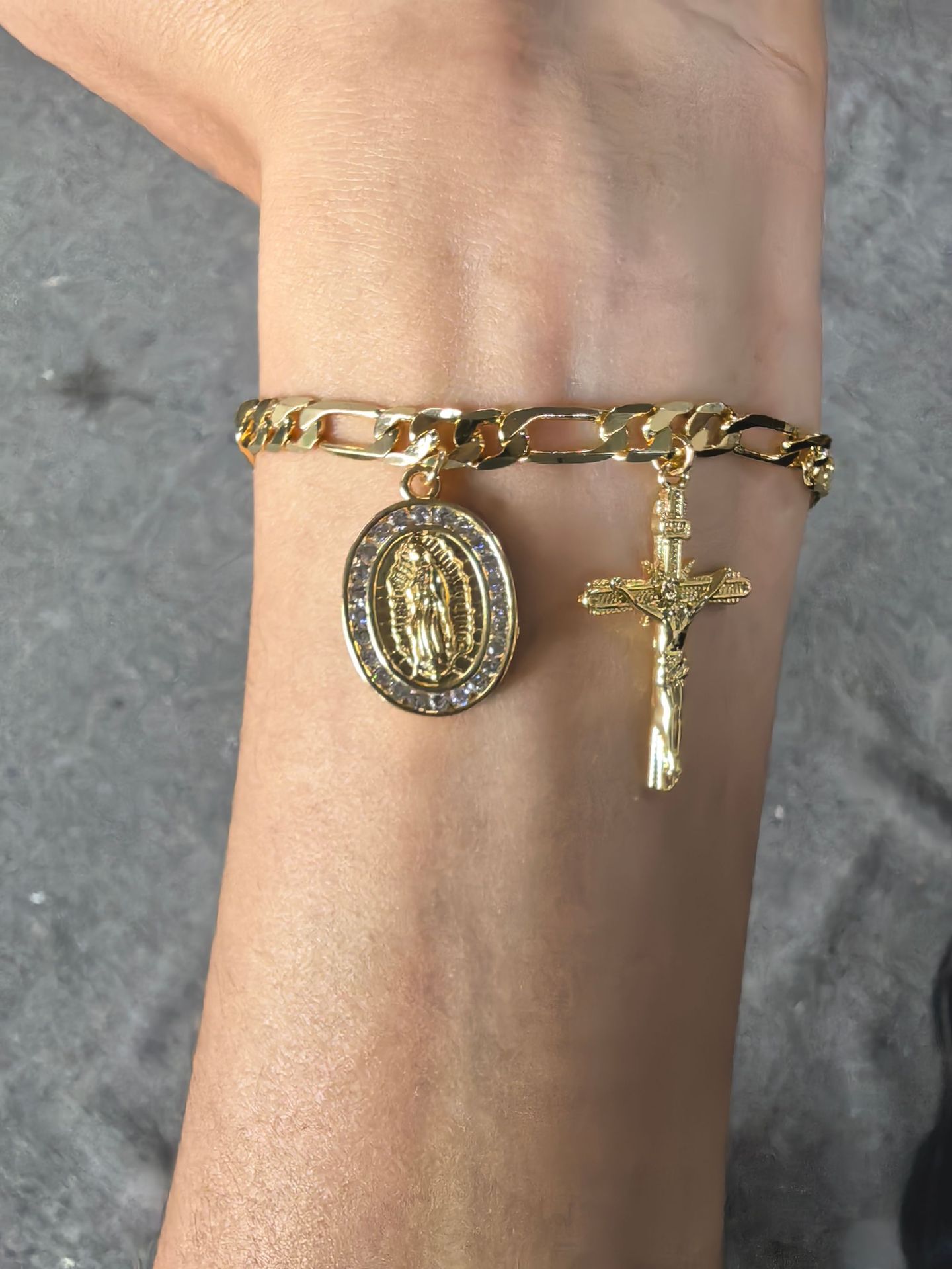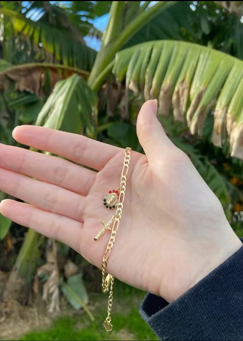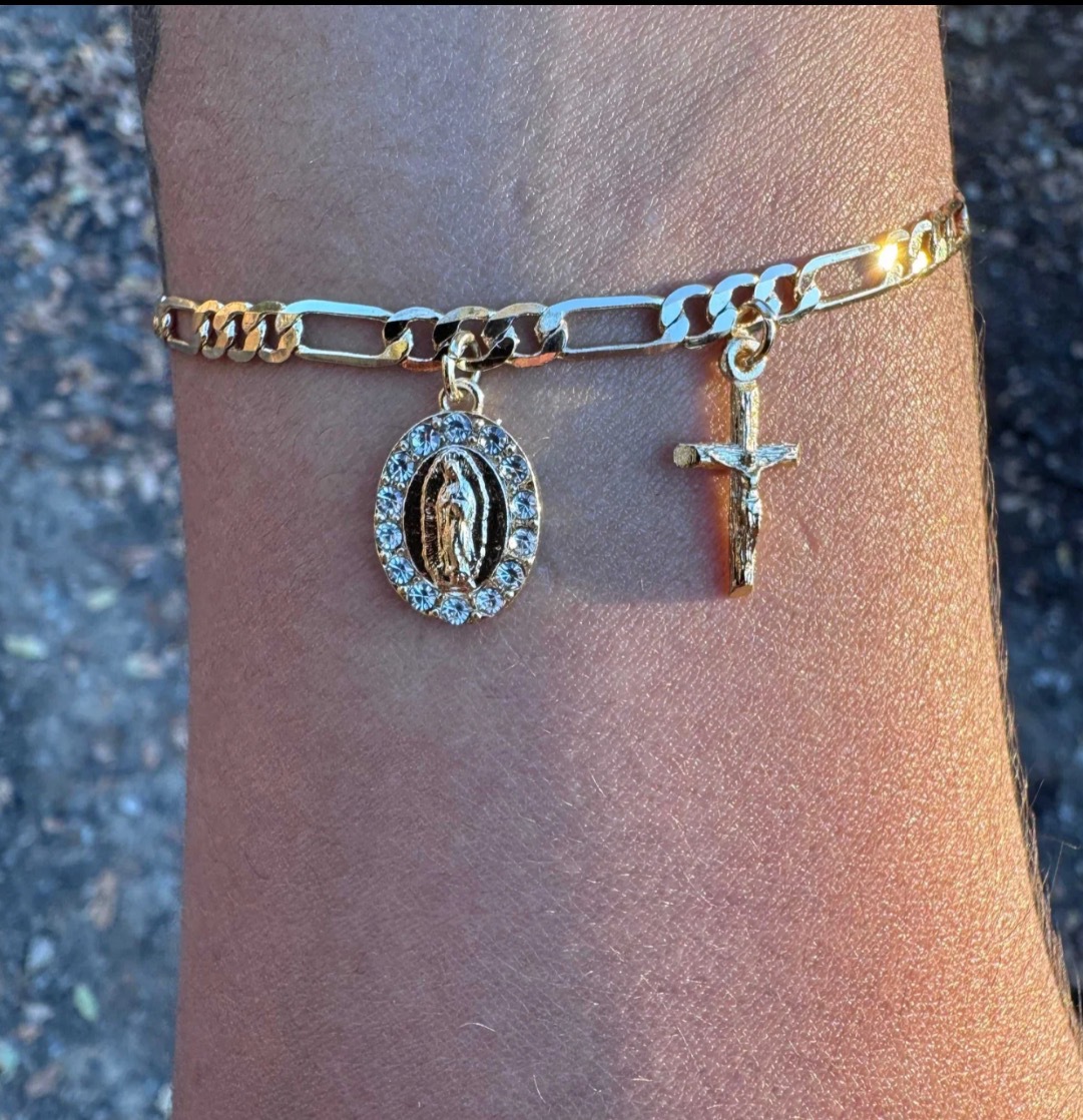 新歐美銅鍍14K包金復古個性簡約聖母瑪利亞吊墜手鏈 宗教飾品