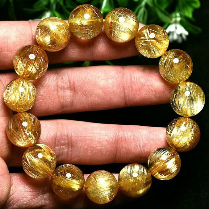 天然招財金髮晶鈦晶金髮手鏈巴西黃髮晶水晶轉運手串情侶男女