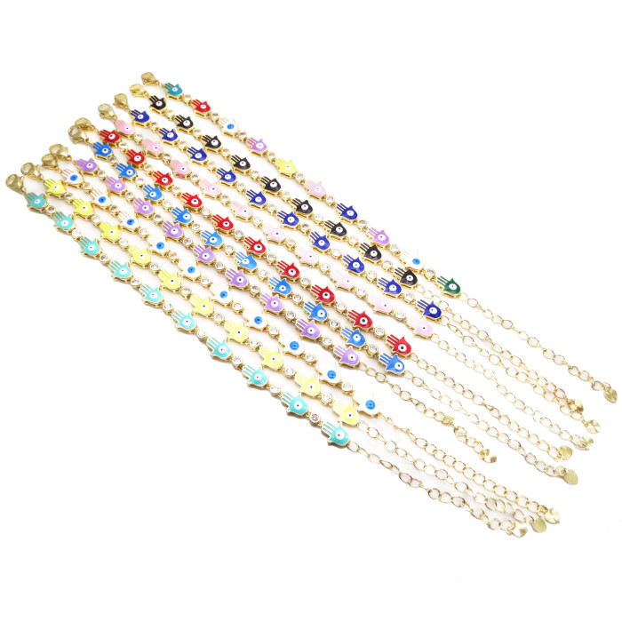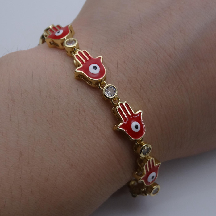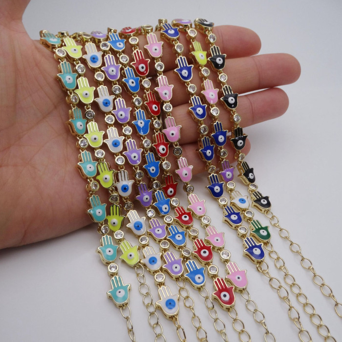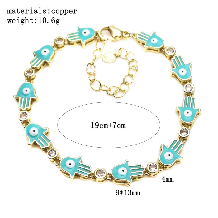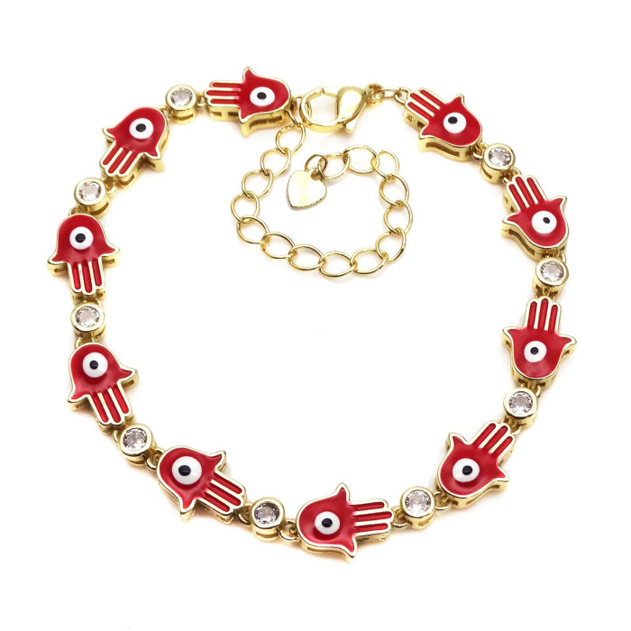 手掌惡魔之眼睛可調節鋯石手鏈歐美嘻哈手鏈男女士手鏈