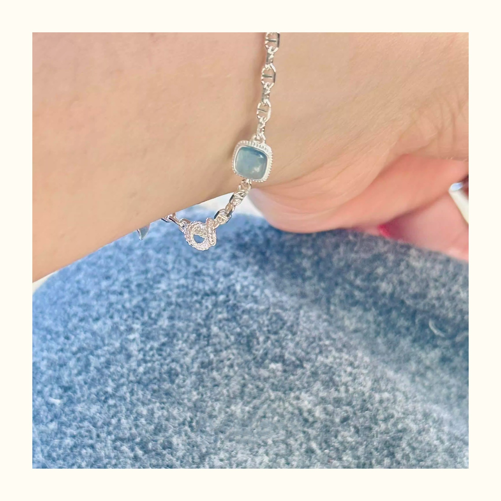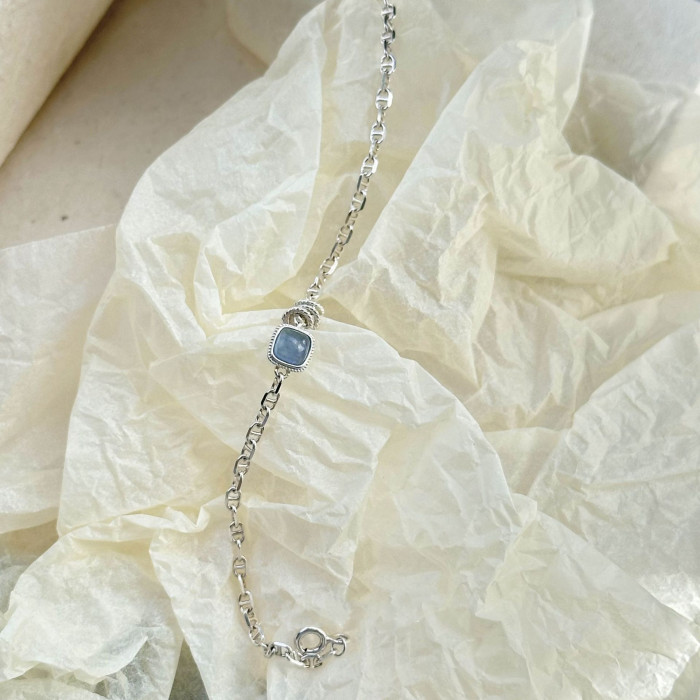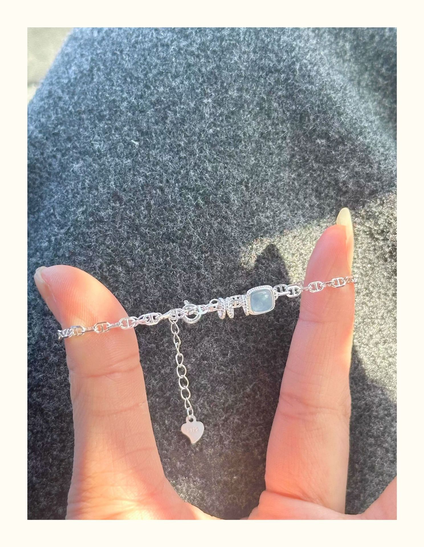 S925純銀絕美肥方海藍寶手鏈輕奢精緻時尚手飾高級感小衆顯瘦設計