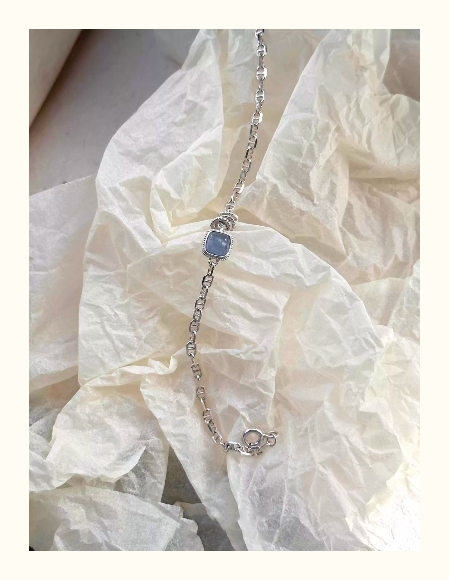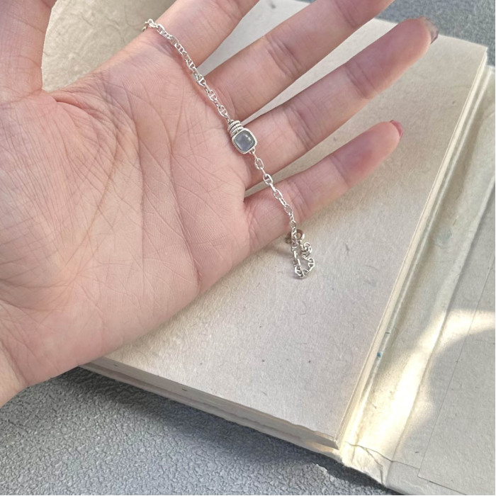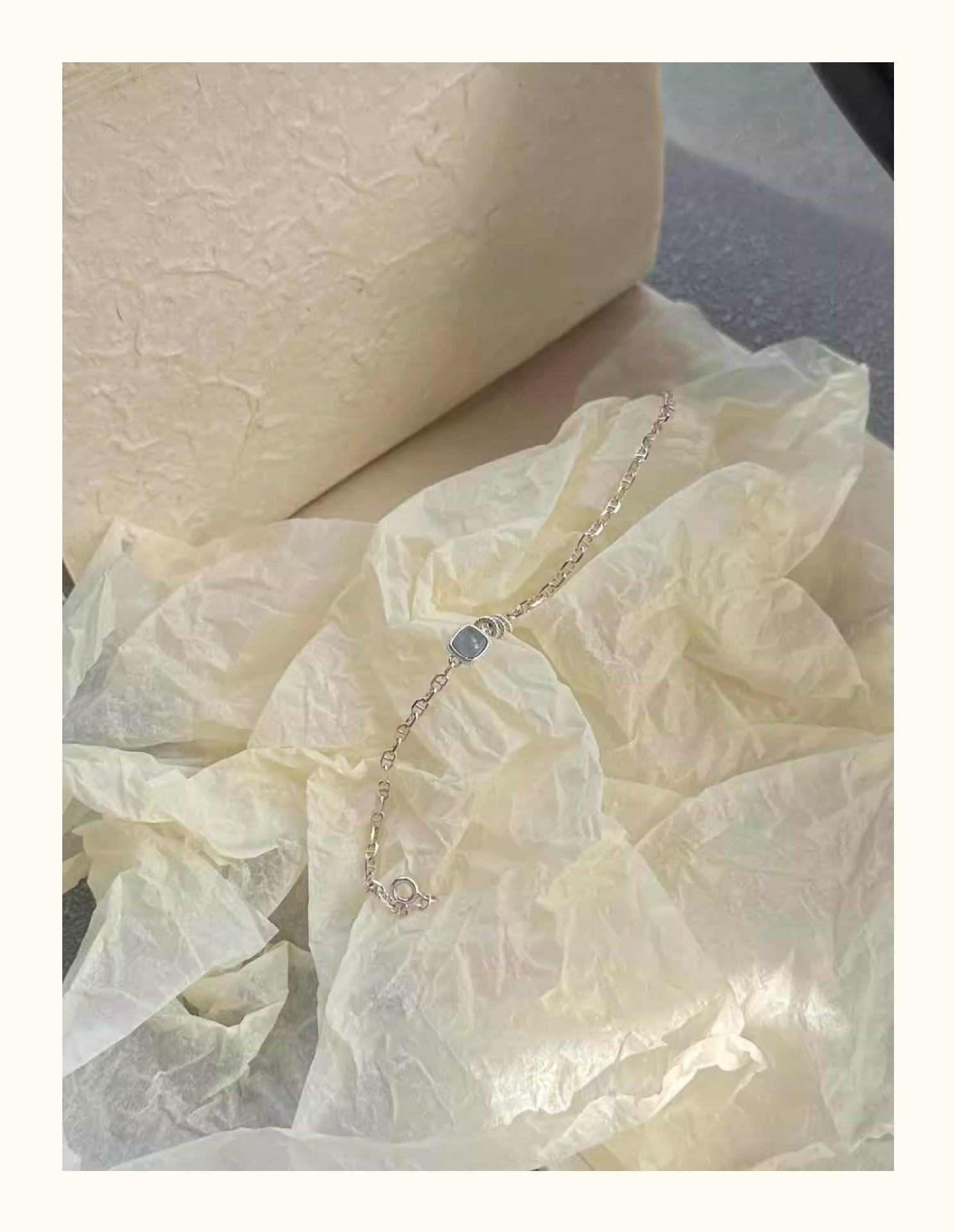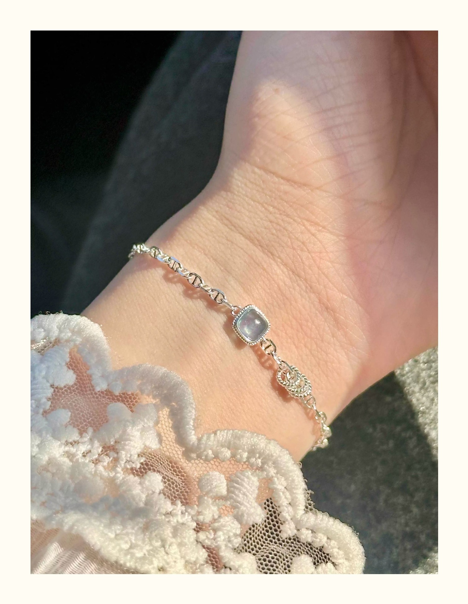 S925純銀絕美肥方海藍寶手鏈輕奢精緻時尚手飾高級感小衆顯瘦設計