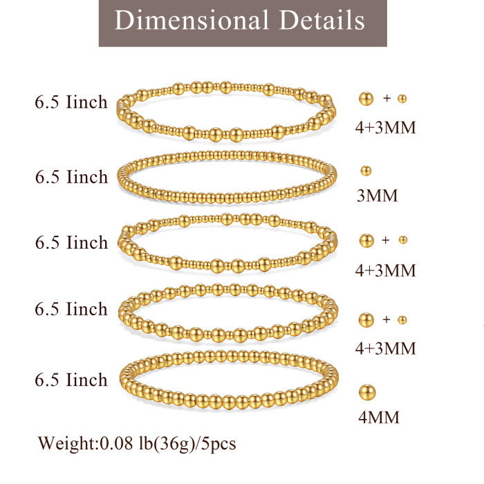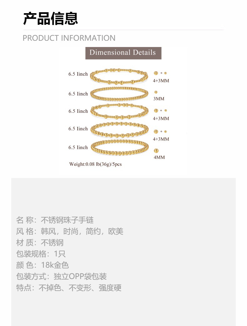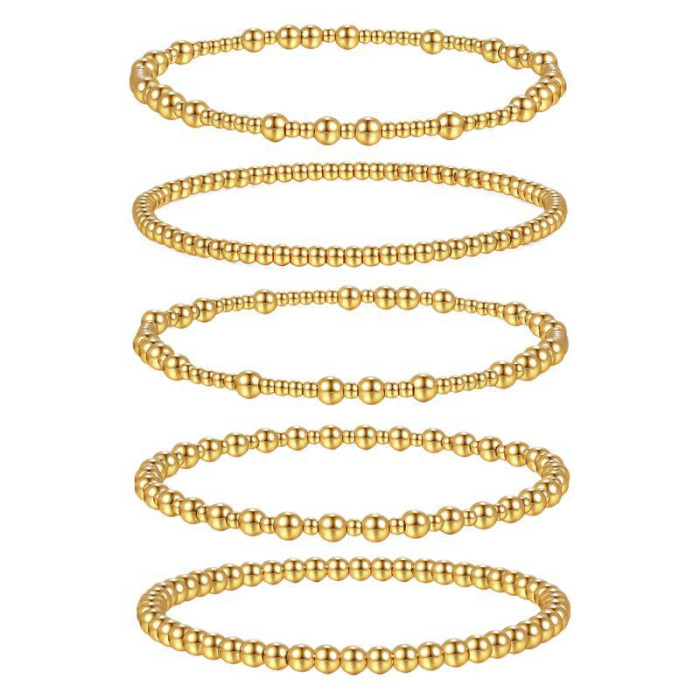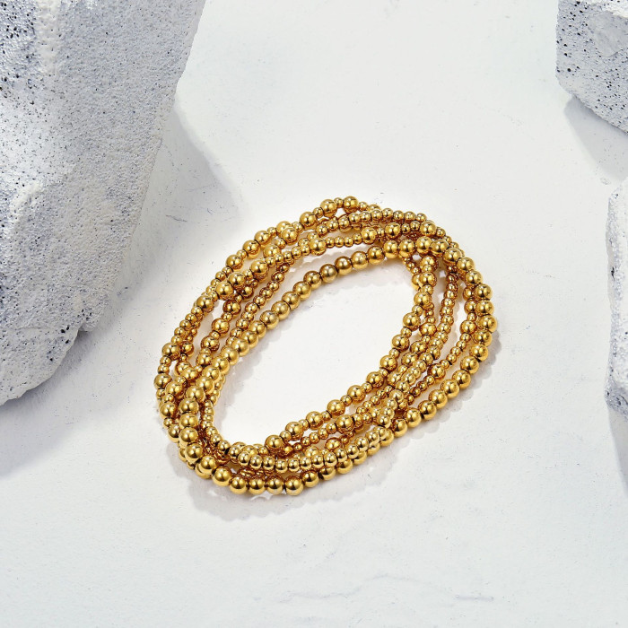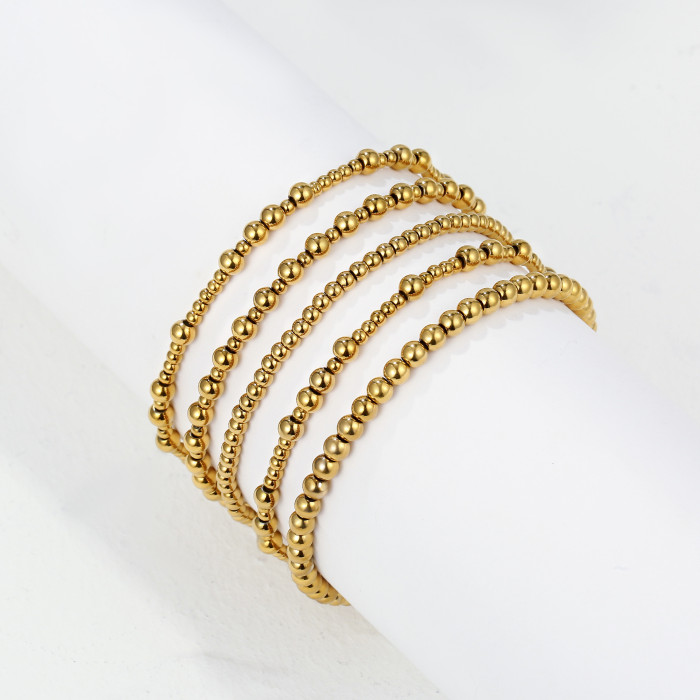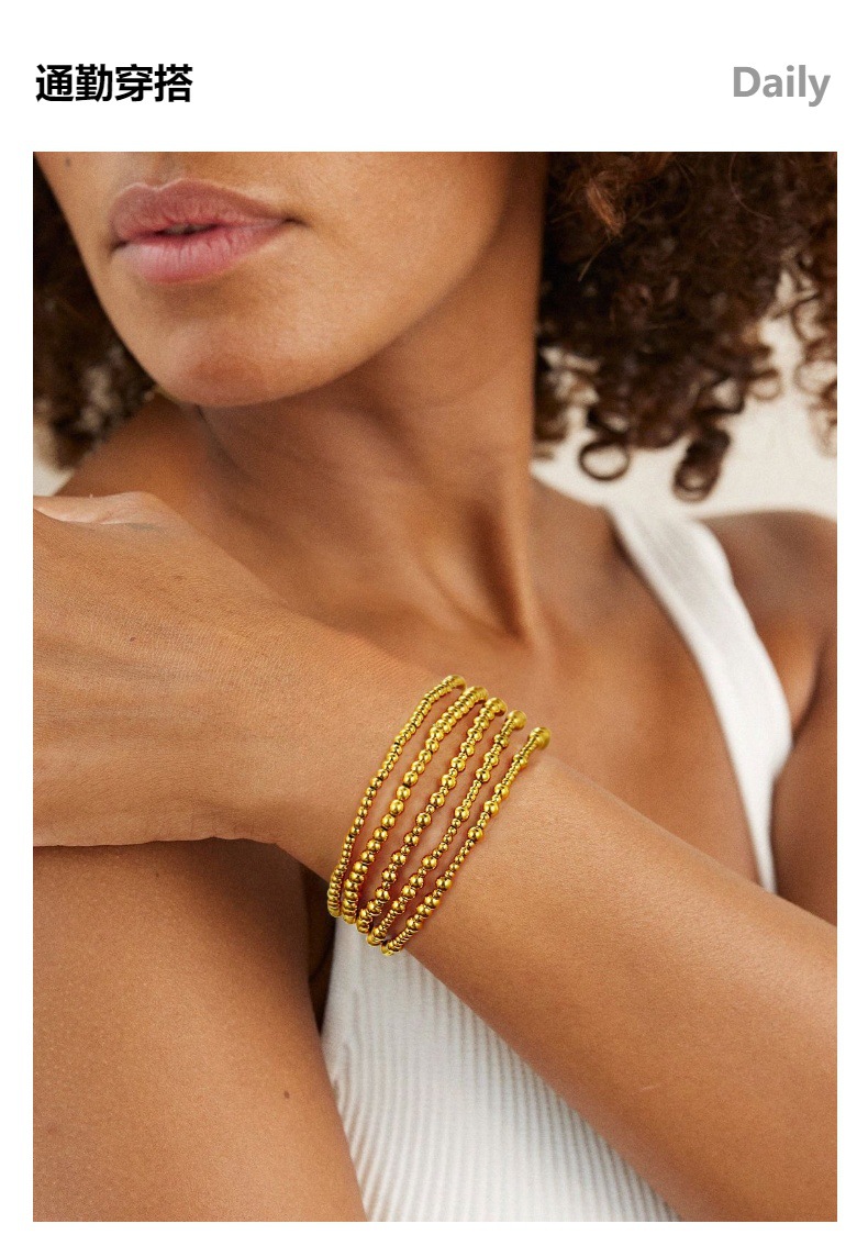 波西米亞風18k金手鏈堆曡大小金珠簡約串珠彈力手鏈