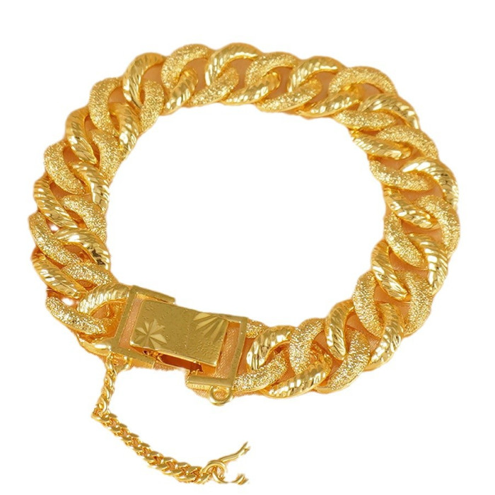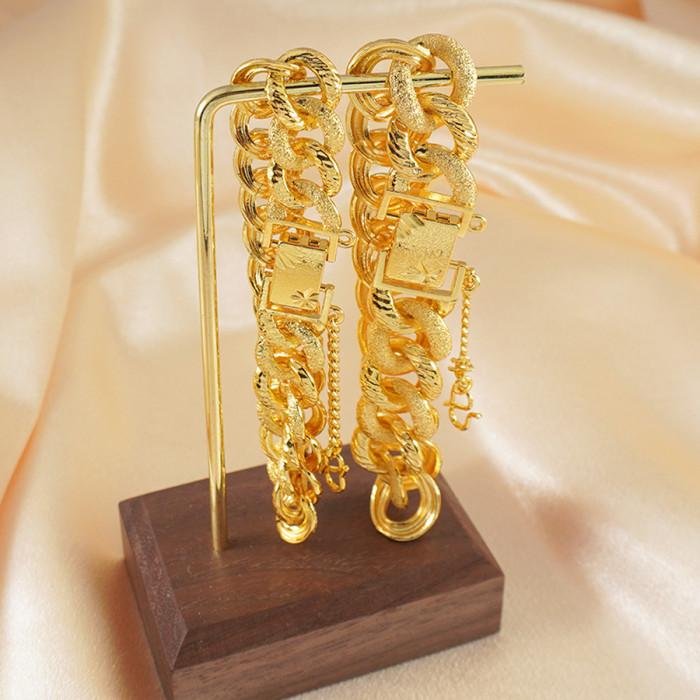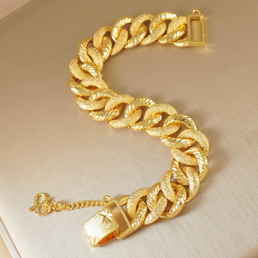 奢華24K鍍金磨砂古巴鏈手鏈女款,嘻哈風格,適合婚禮與日常華麗