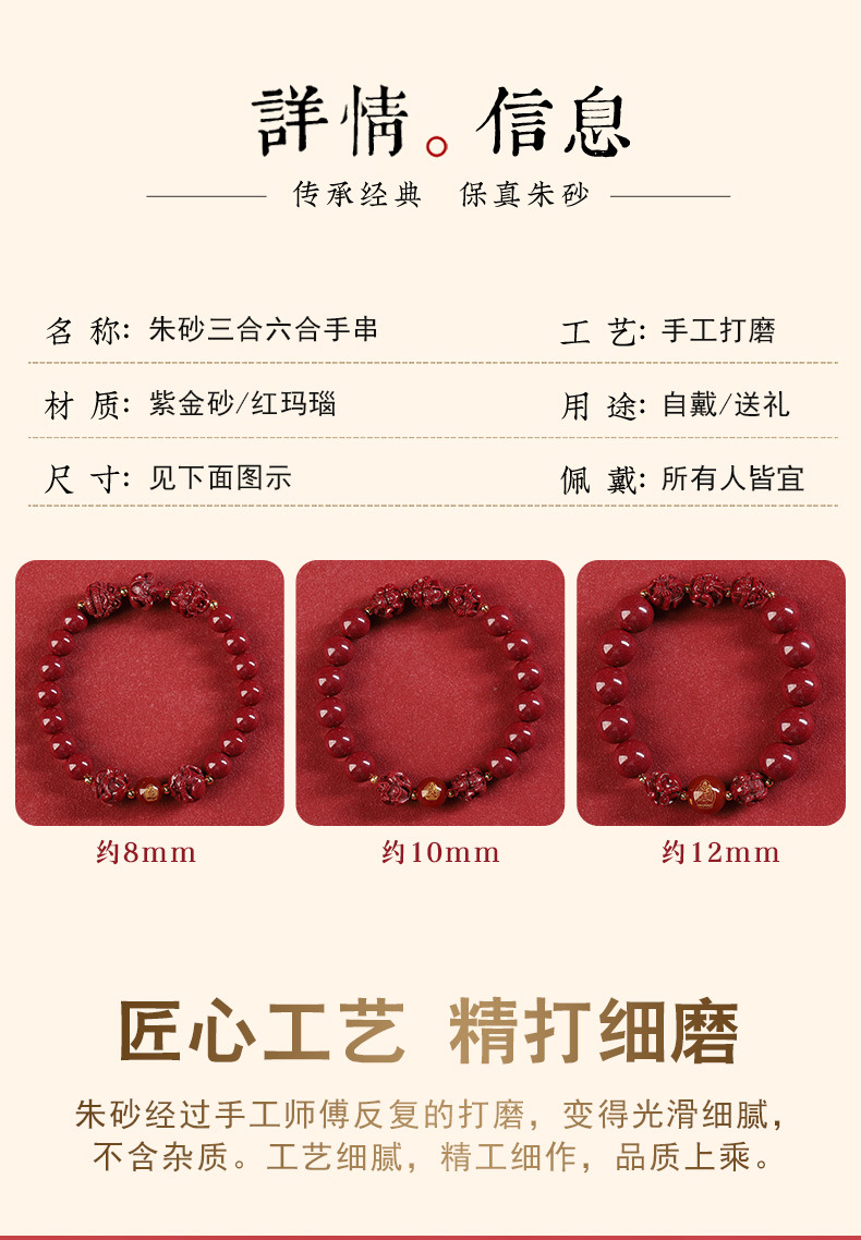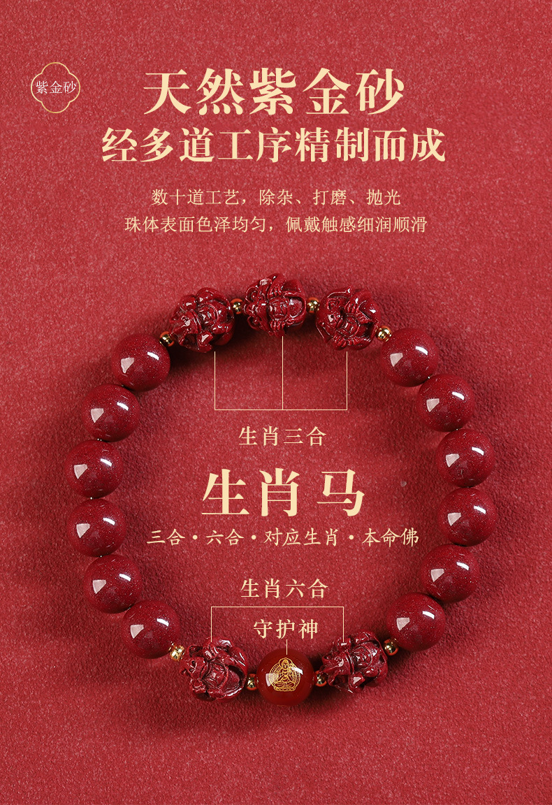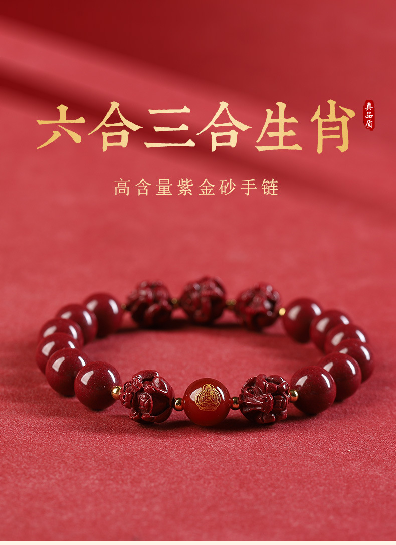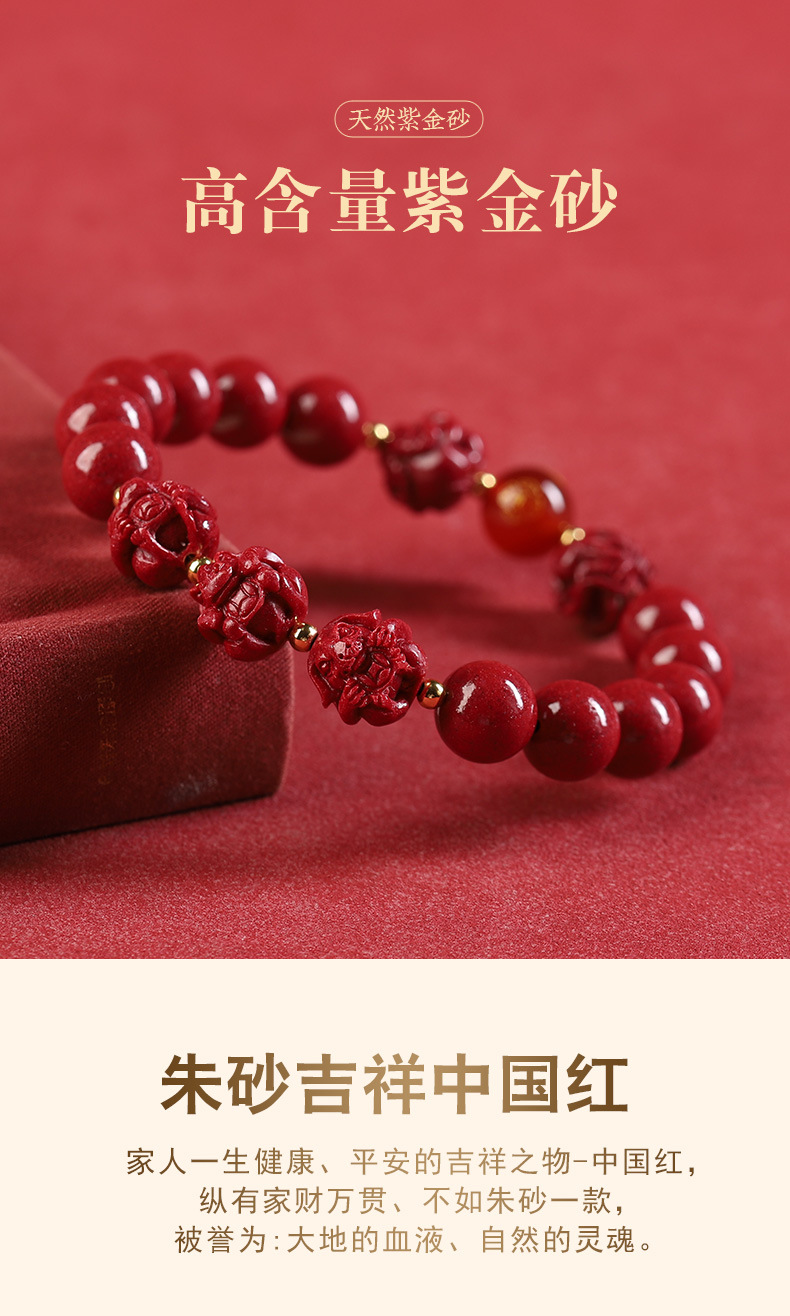 寓福祥經典款硃砂本命年三合六合手串女款原礦高含量紫金砂手鏈男