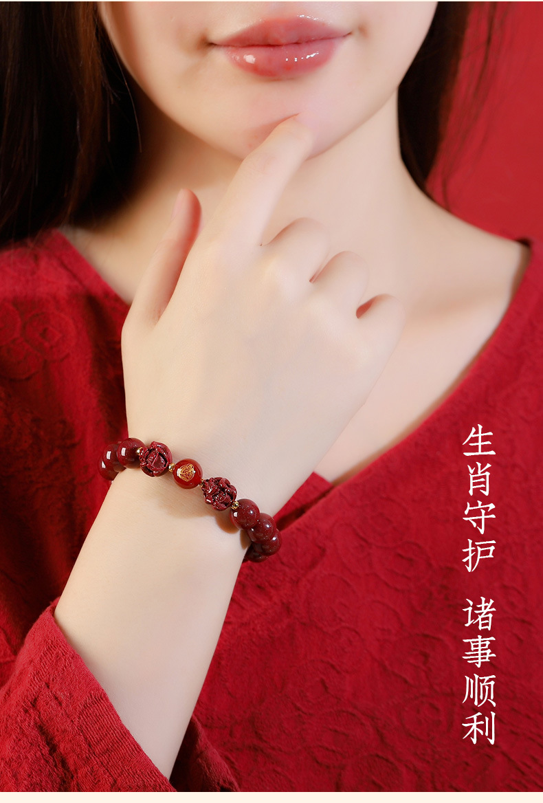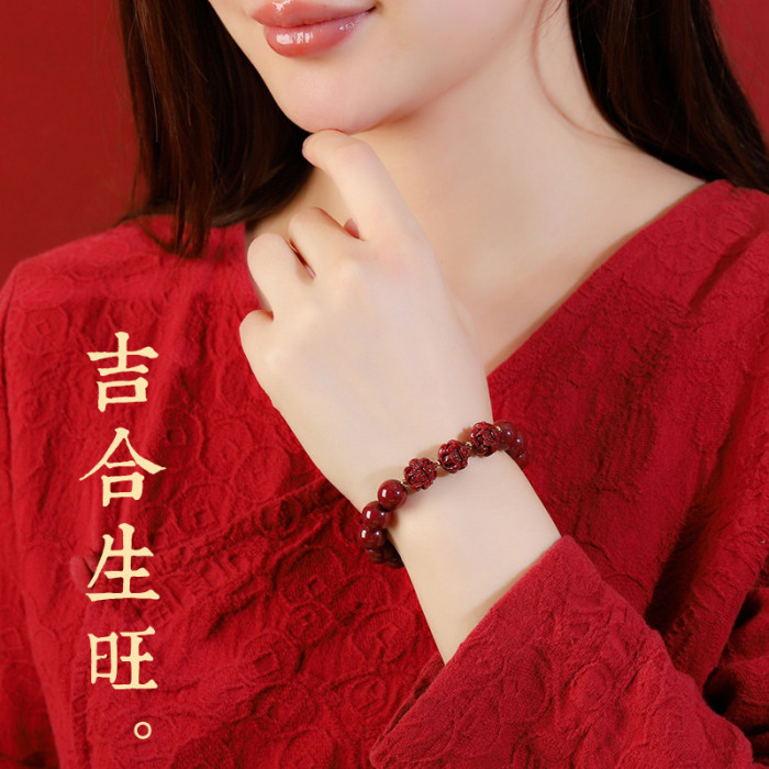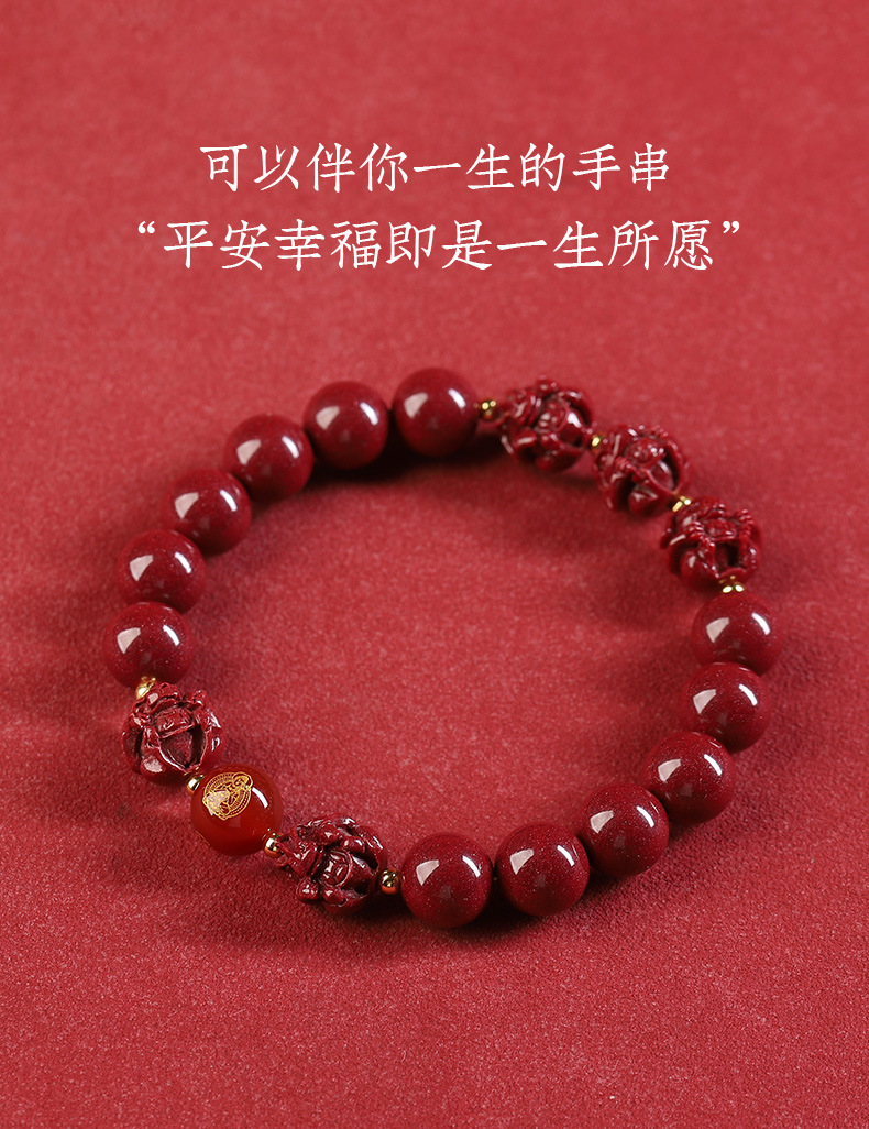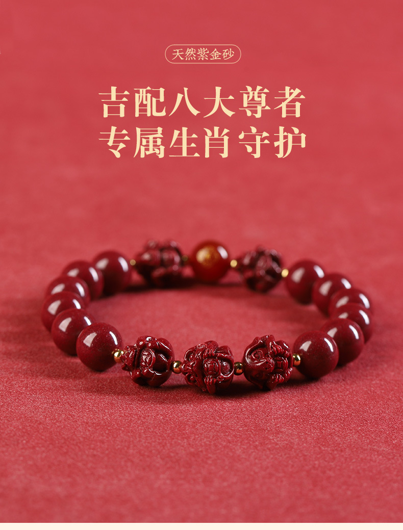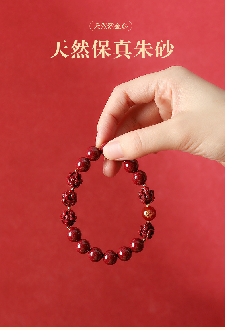 寓福祥經典款硃砂本命年三合六合手串女款原礦高含量紫金砂手鏈男