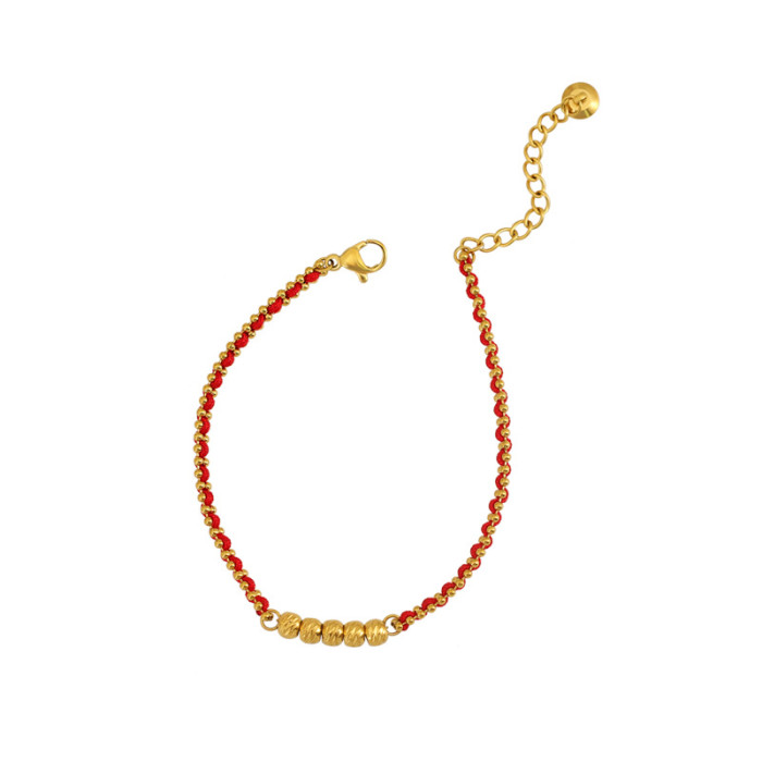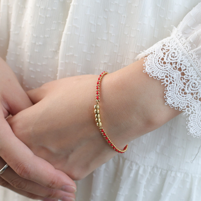 新款本命年紅繩手鏈女古法手工編織繩小金珠太嵗紅色手繩新年禮物