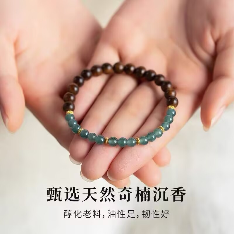 風禾珠寶手鏈王同款奇楠沉香手串女天然藍水翡翠彿珠半山半水禮物