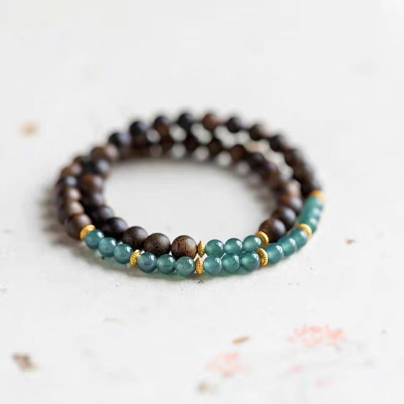 顔色 【單圈】沉香木+藍水翡翠8mm