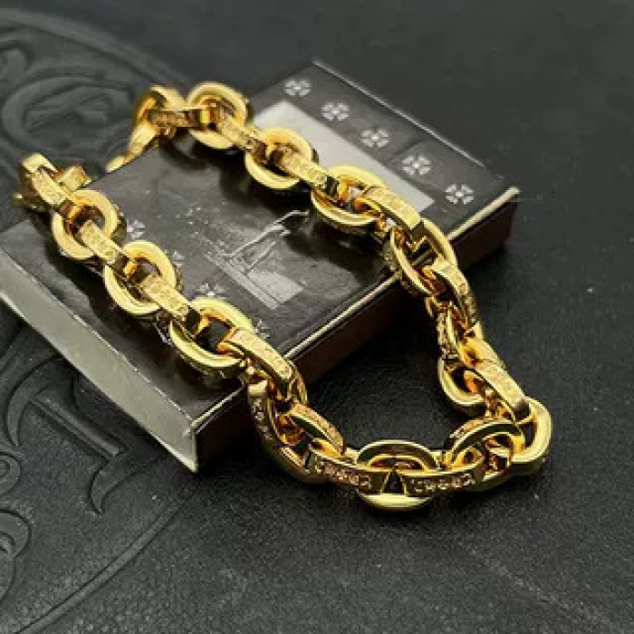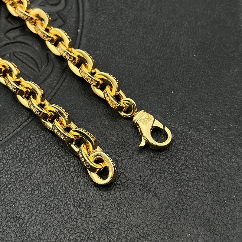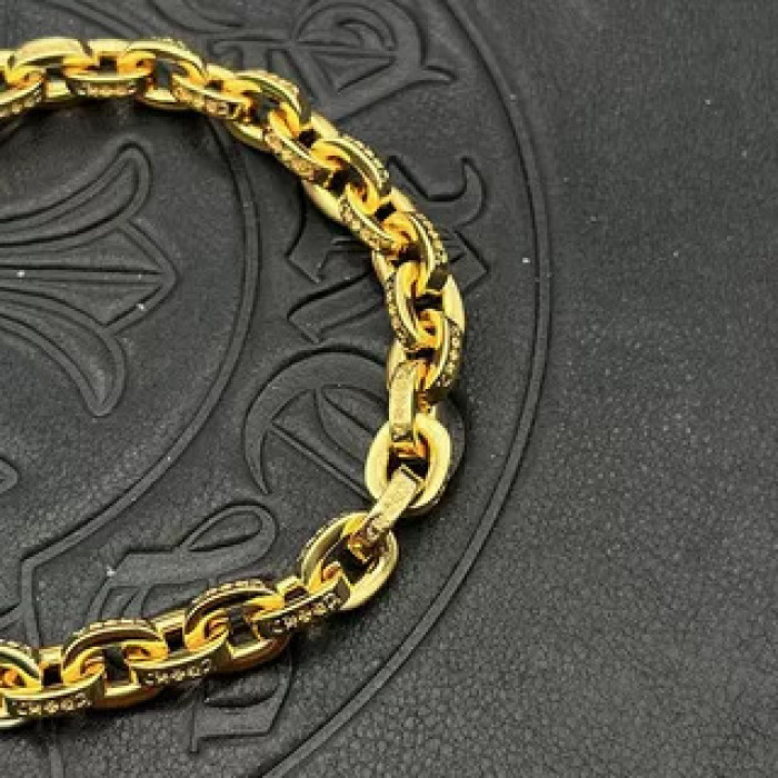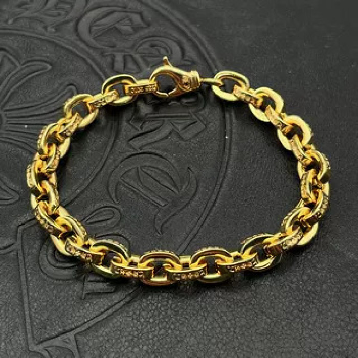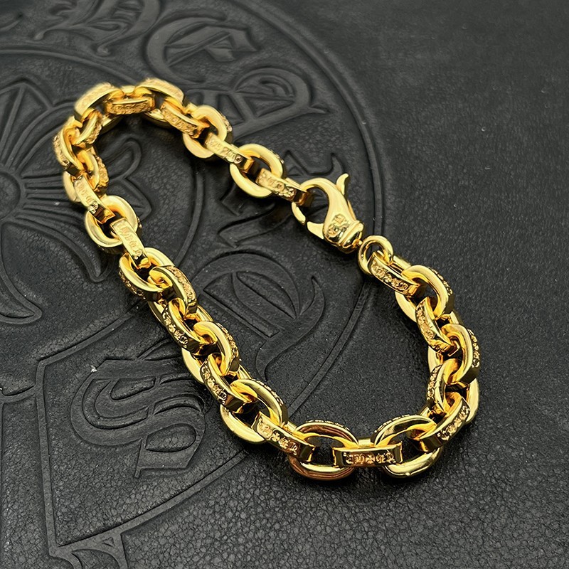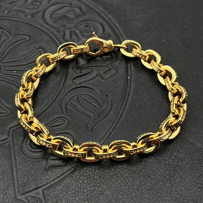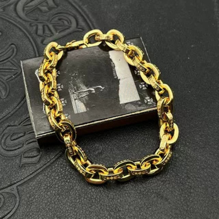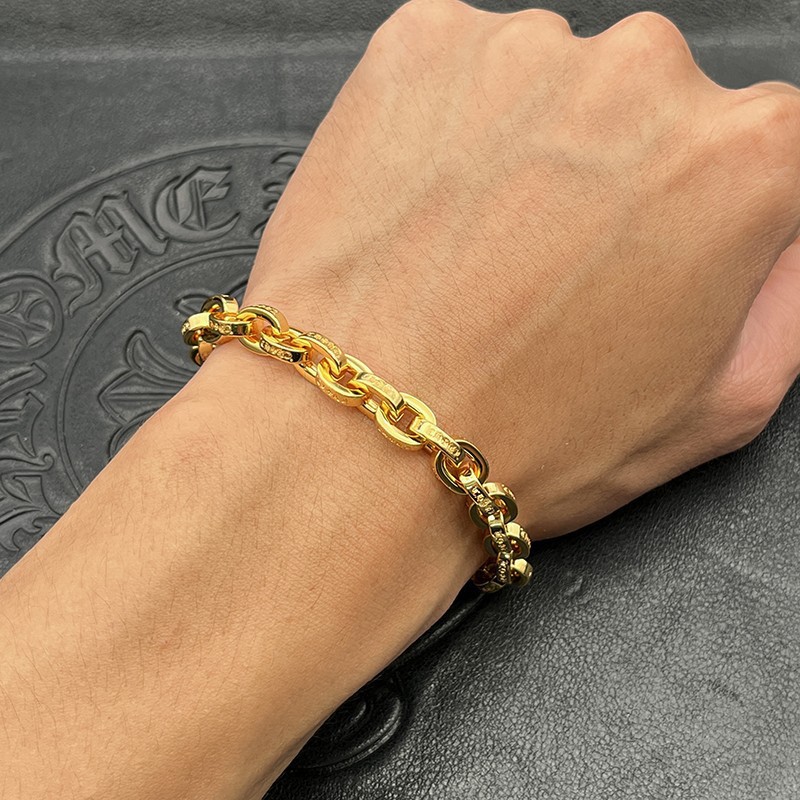 潮款龐克嘻哈泰銀鍍22K金色粗字母手鏈男女士十字花手飾歐美
