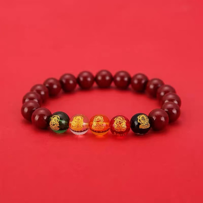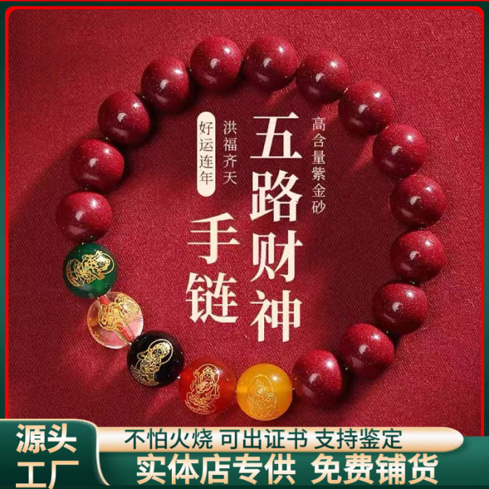 原礦硃砂手串五路財神高含量紫金砂本命年男女款手鏈飾品禮物