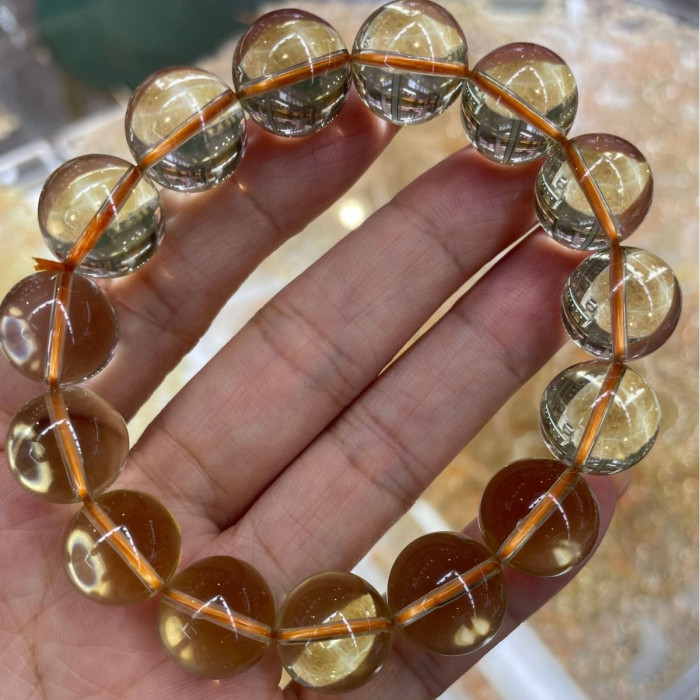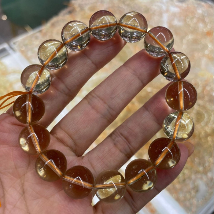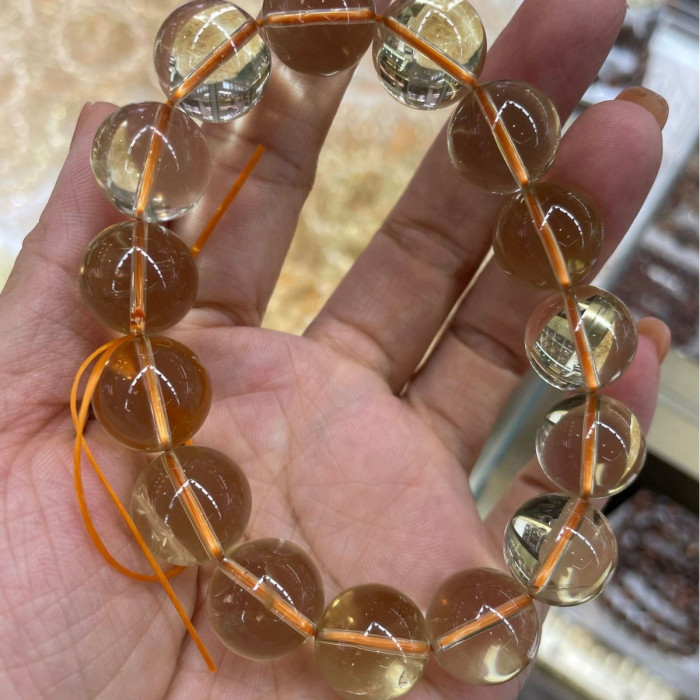 天然黃水晶手串濃鬱巴西料檸檬水晶圓珠手鏈高級招財黃水晶項鍊批