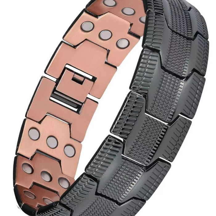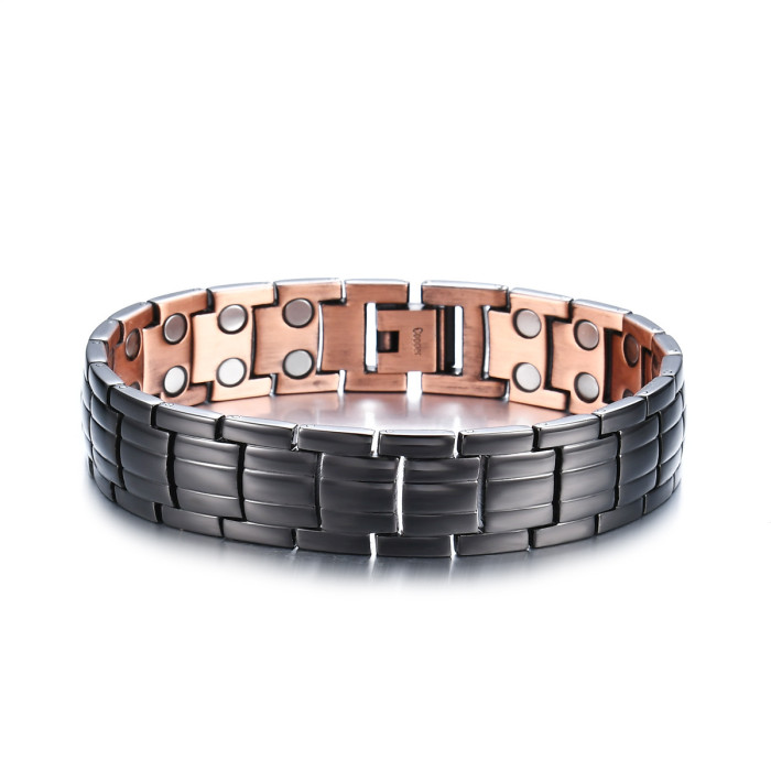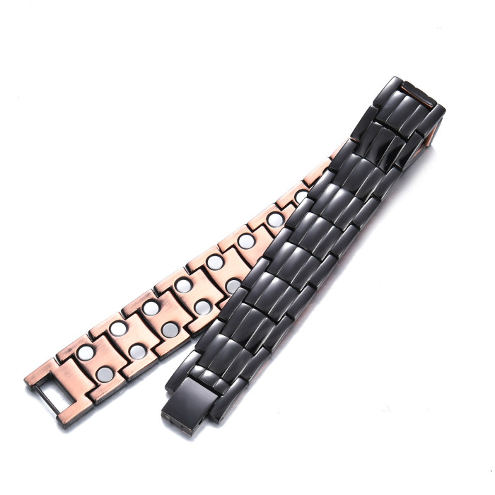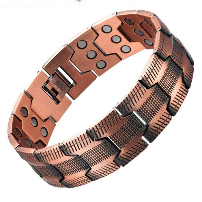 輪胎紋銅手鏈 歐美跨斜紋古紅銅男士手鏈 三排磁石