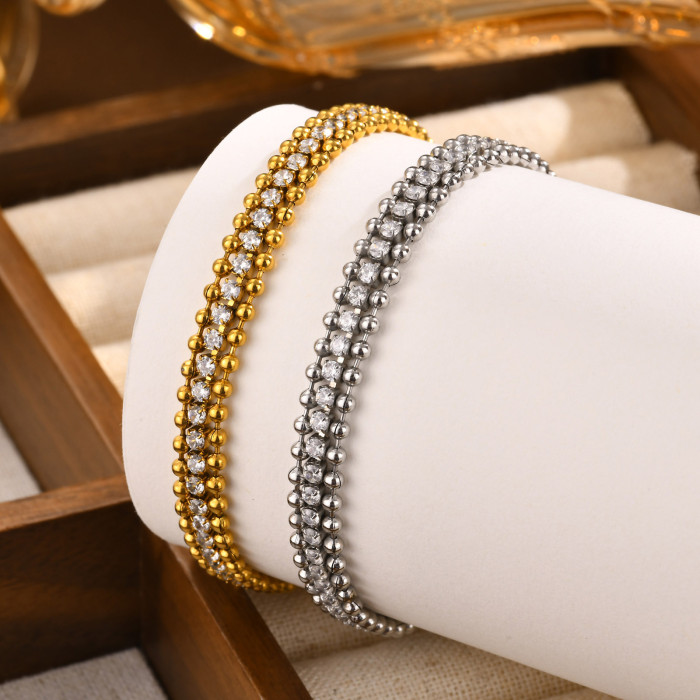 歐美不鏽鋼鏈條鋯石手鏈女18K金色 三層手鏈 首飾飾品BR-1534