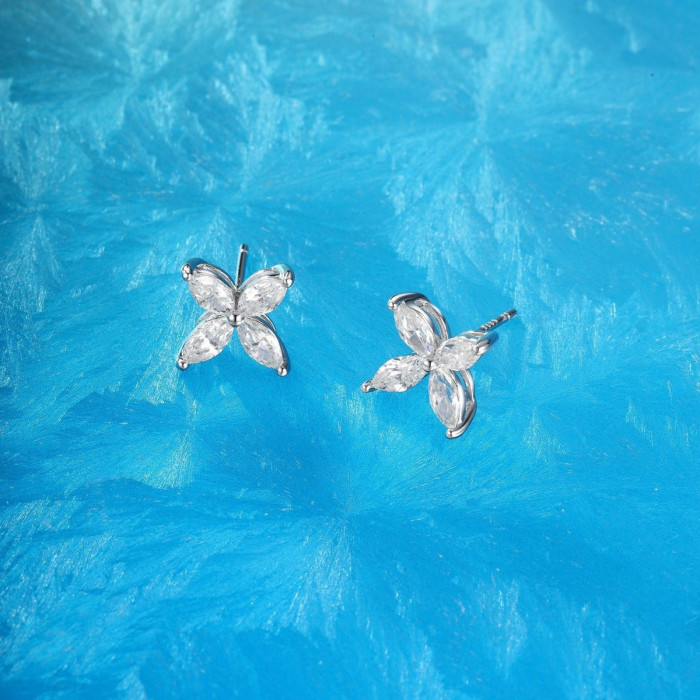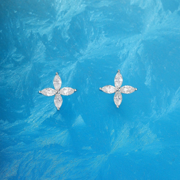 925銀四葉草馬眼耳釘 輕奢簡約個性耳釘耳飾