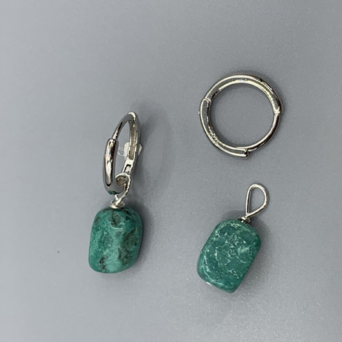 天然原礦湖北綠松石耳環925銀手工原創diy設計綠松石耳環耳圈
