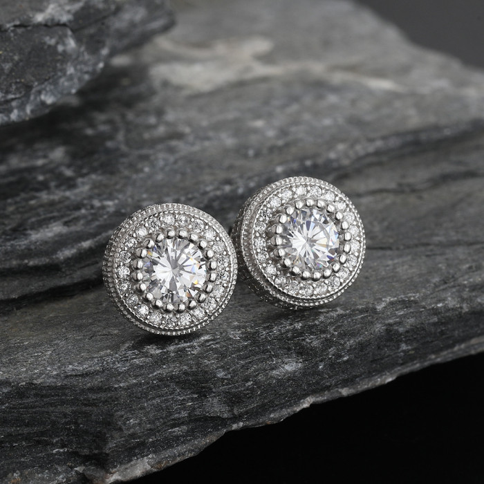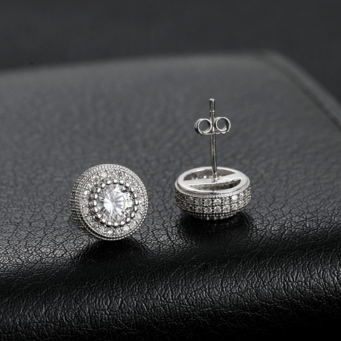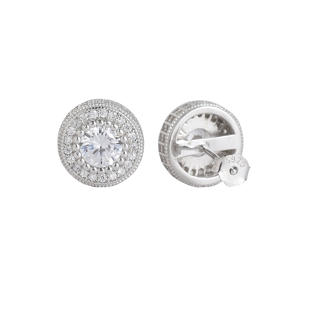 925銀鑲鋯石圓形耳釘