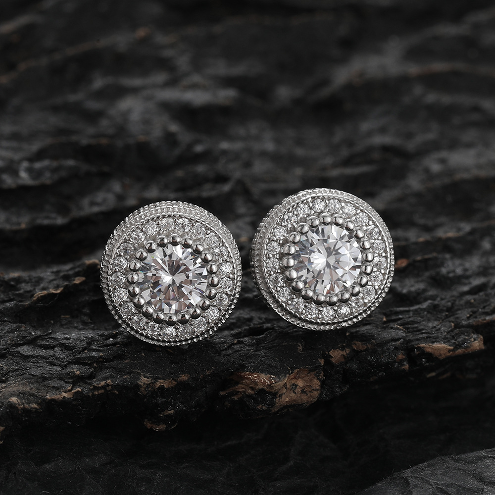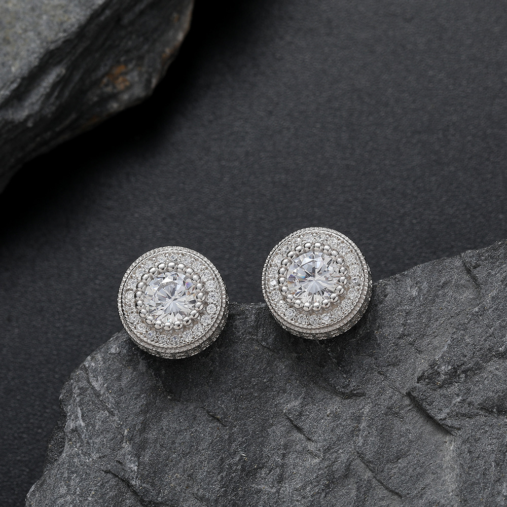 925銀耳環圓形歐美嘻哈說唱耳飾潮款通體925銀輕奢高級感鋯石耳釘