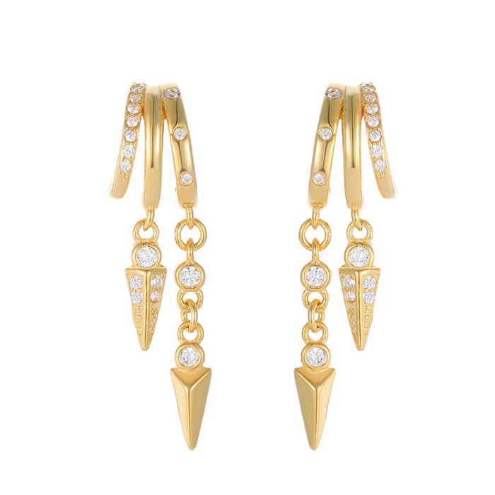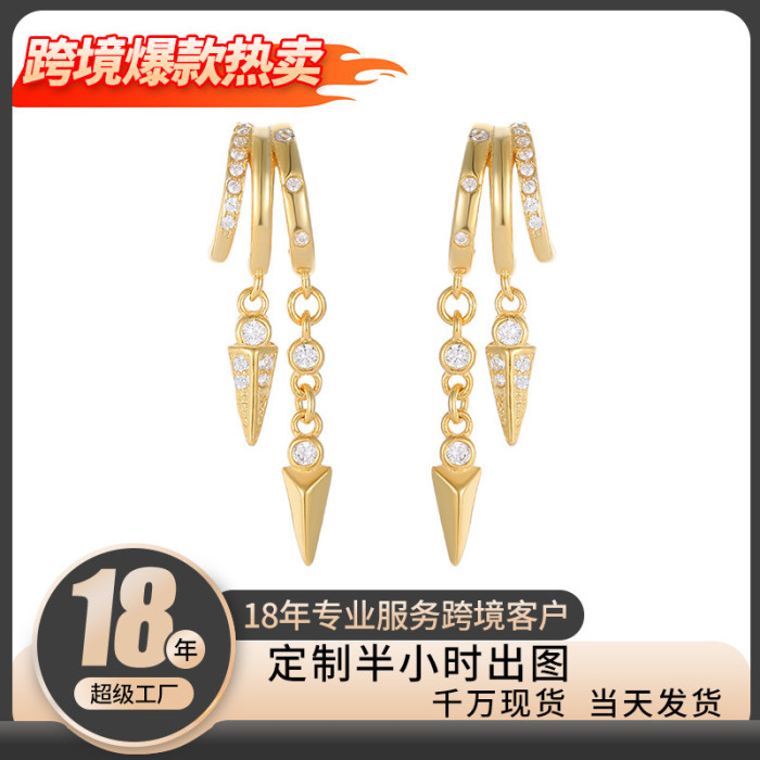 925純銀多層鑲鑽柳釘耳釘男女嘻哈個性流蘇耳飾歐美流行配飾