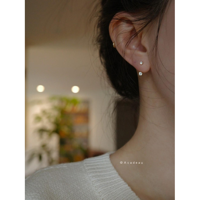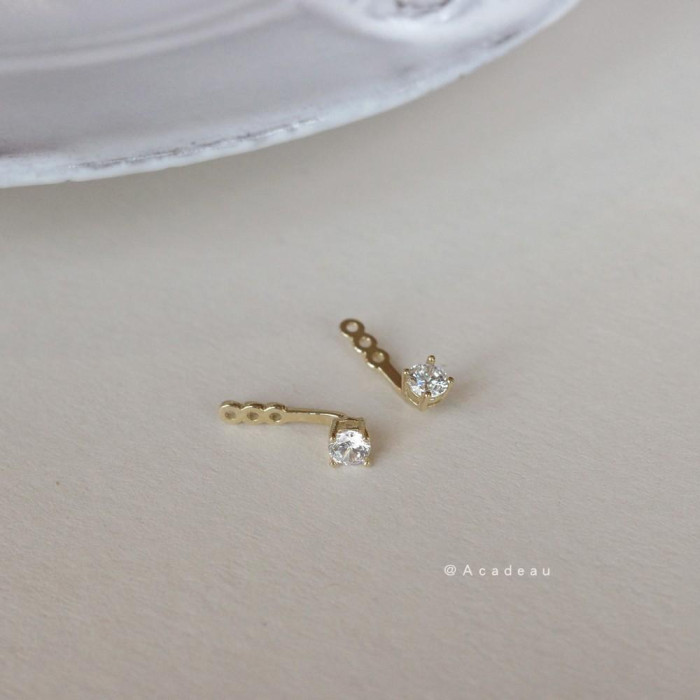後掛耳釘伴侶 925純銀鍍14k金鋯石迷你百搭小耳釘配件