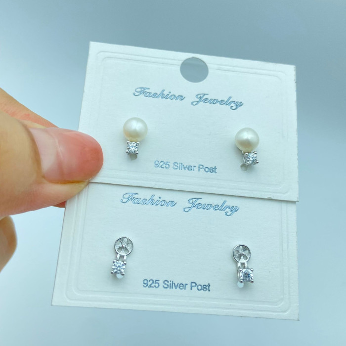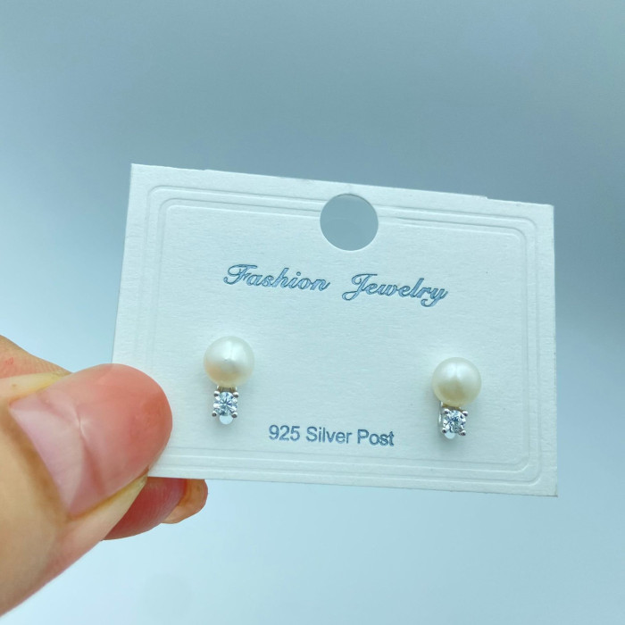 天然淡水925珍珠耳釘鍍金高級感鑲鑽純銀耳釘小衆設計純銀耳飾批