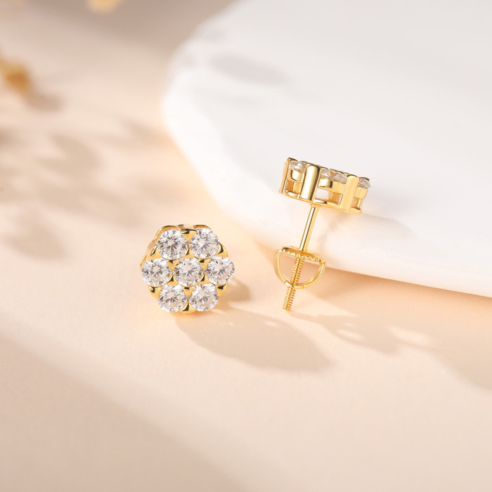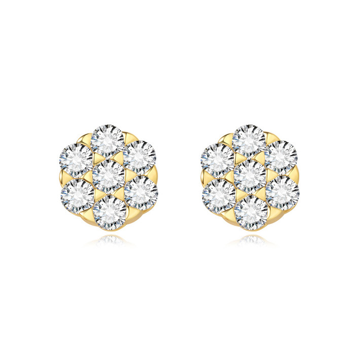 白雲 925銀鍍18K金鑲莫桑石耳釘新款時尚小衆耳環女爆款