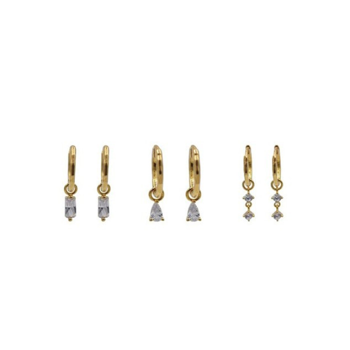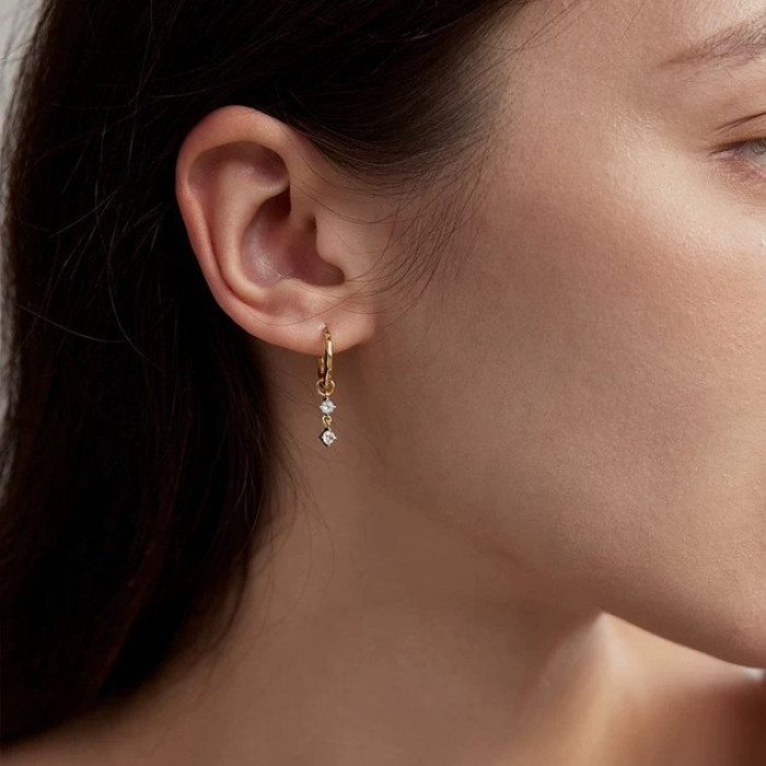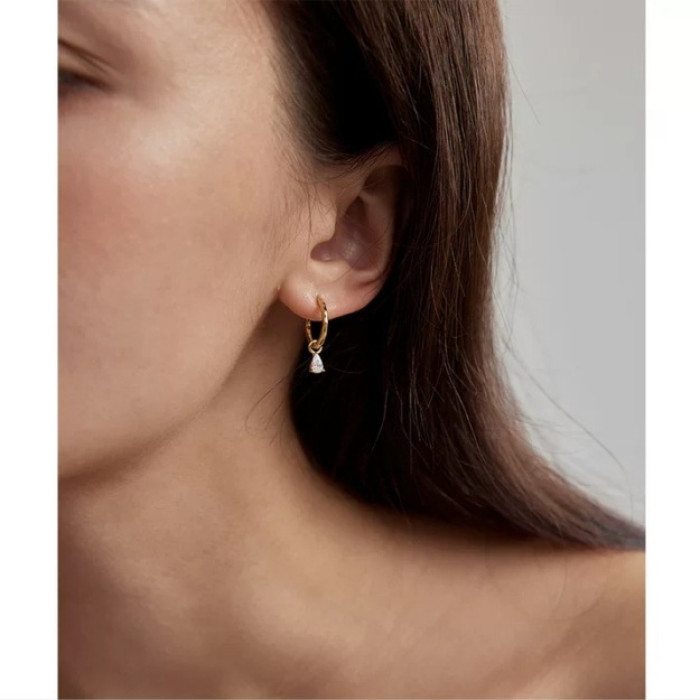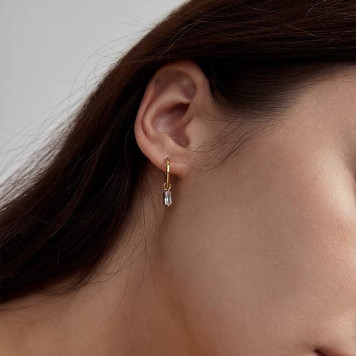 925銀鍍18k金 法式復古水滴/方塊/小鋯石精緻小耳圈女耳環百搭飾