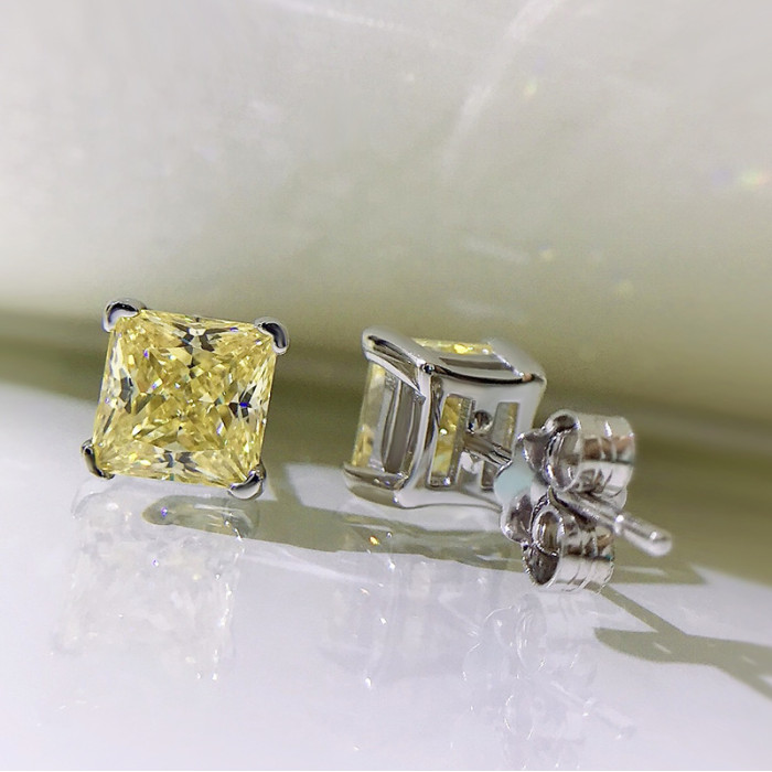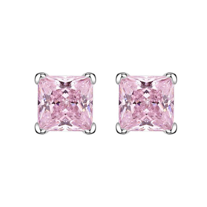 卓之凡新款高碳鑽925銀耳釘豔粉鑽簡約ins公主方6*6m冰花切耳飾女