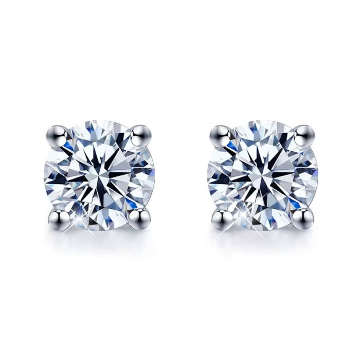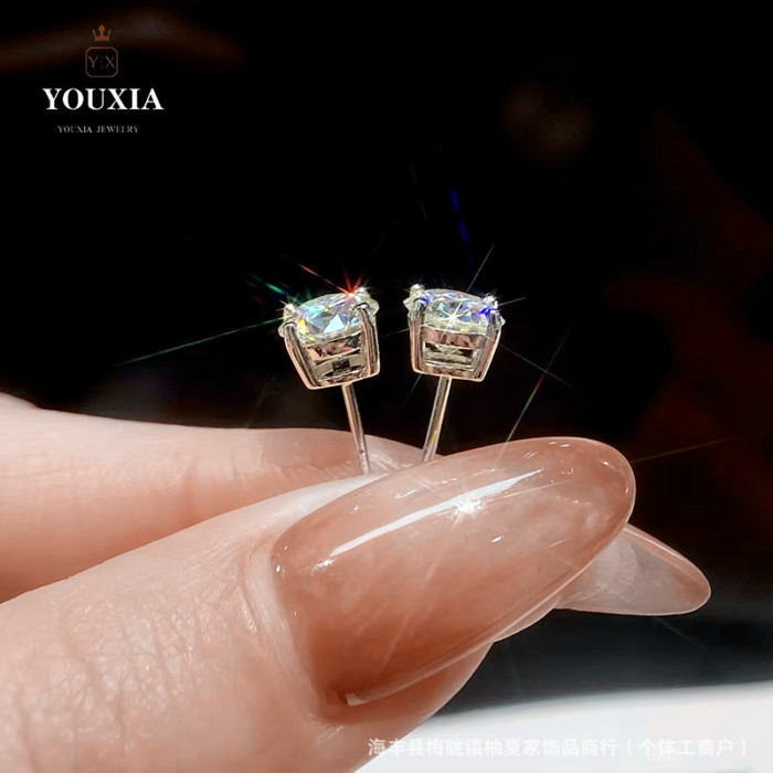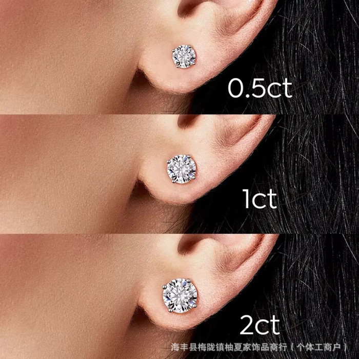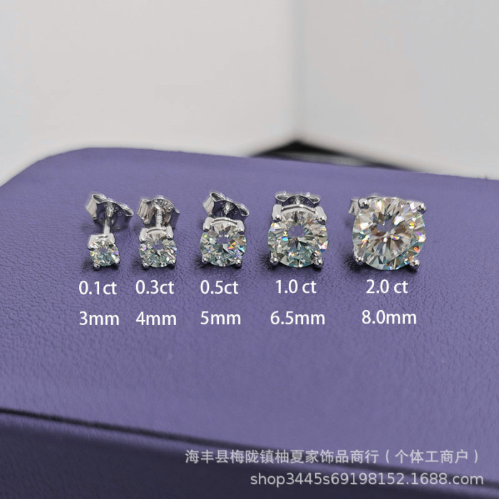 10分30分純銀925女款莫桑鑽d色四爪耳釘莫桑石耳飾品