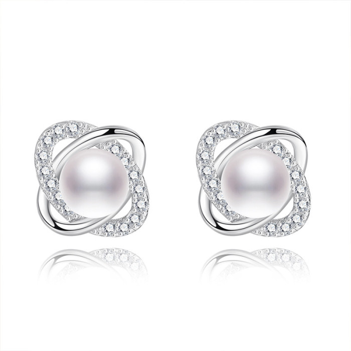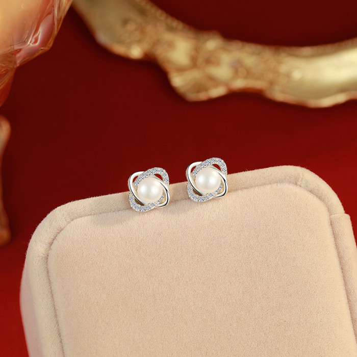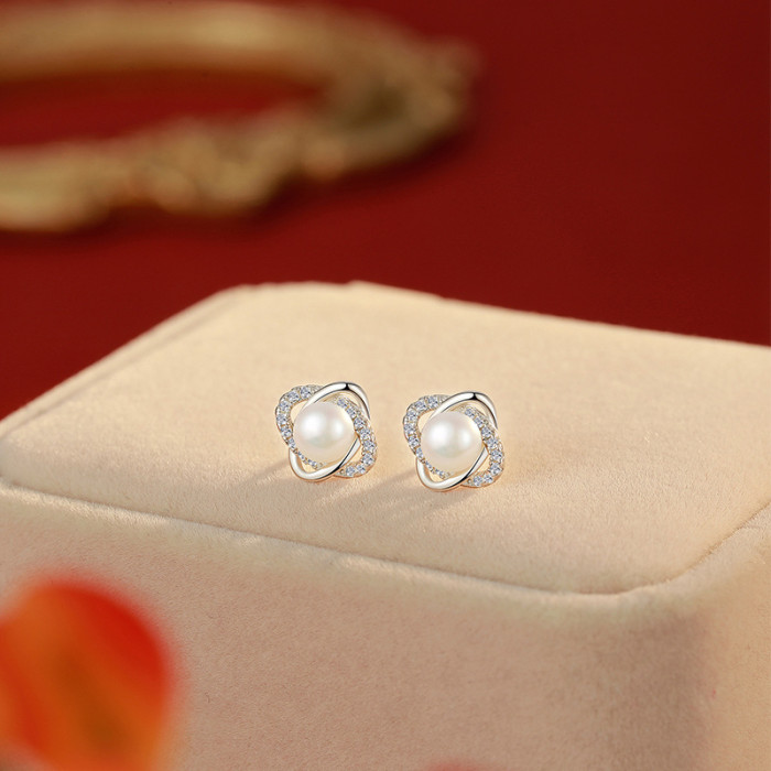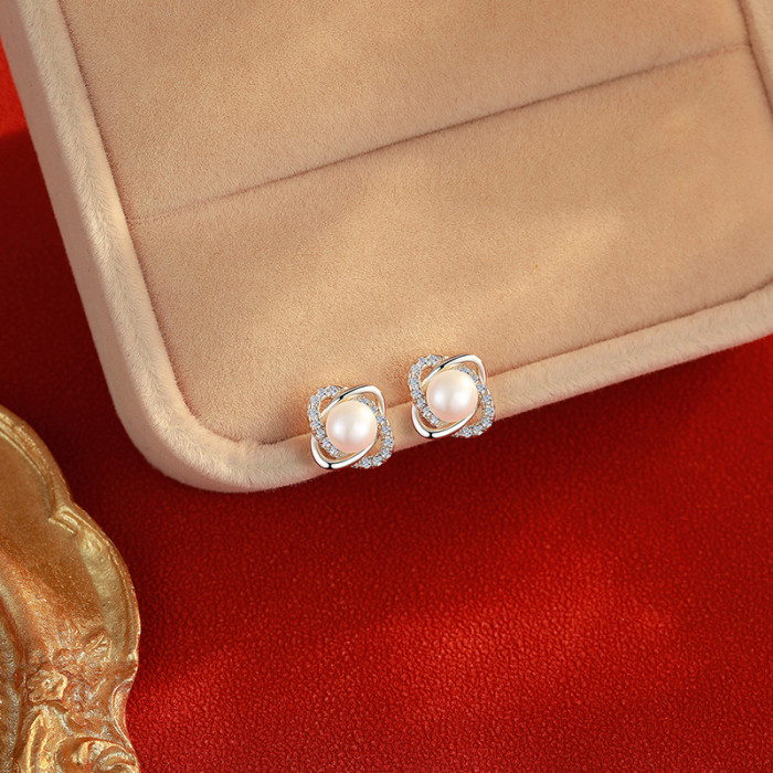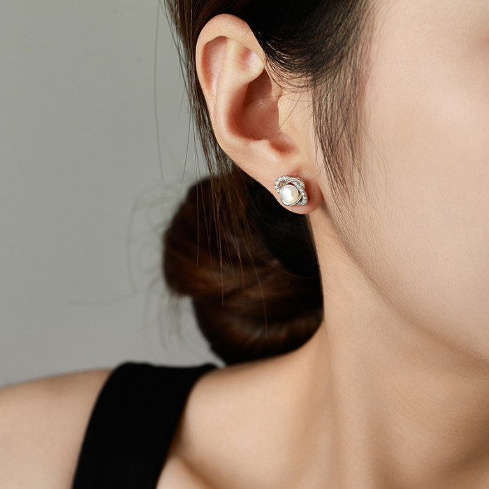 925純銀韓版個性小巧珍珠耳環創意鏤空耳釘唯美簡約網紅耳釘