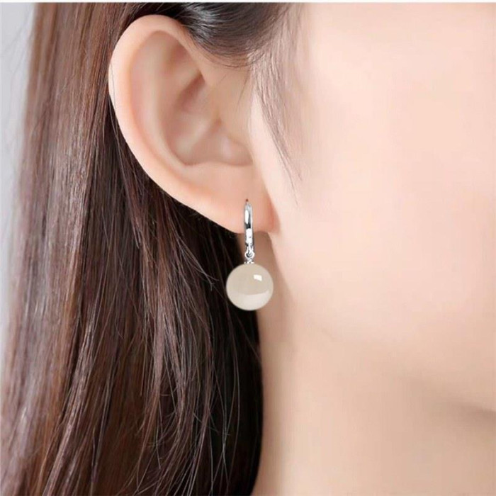 925銀天然綠瑪瑙長款耳環耳釘韓版時尚百搭耳墜簡約耳釦耳飾小衆