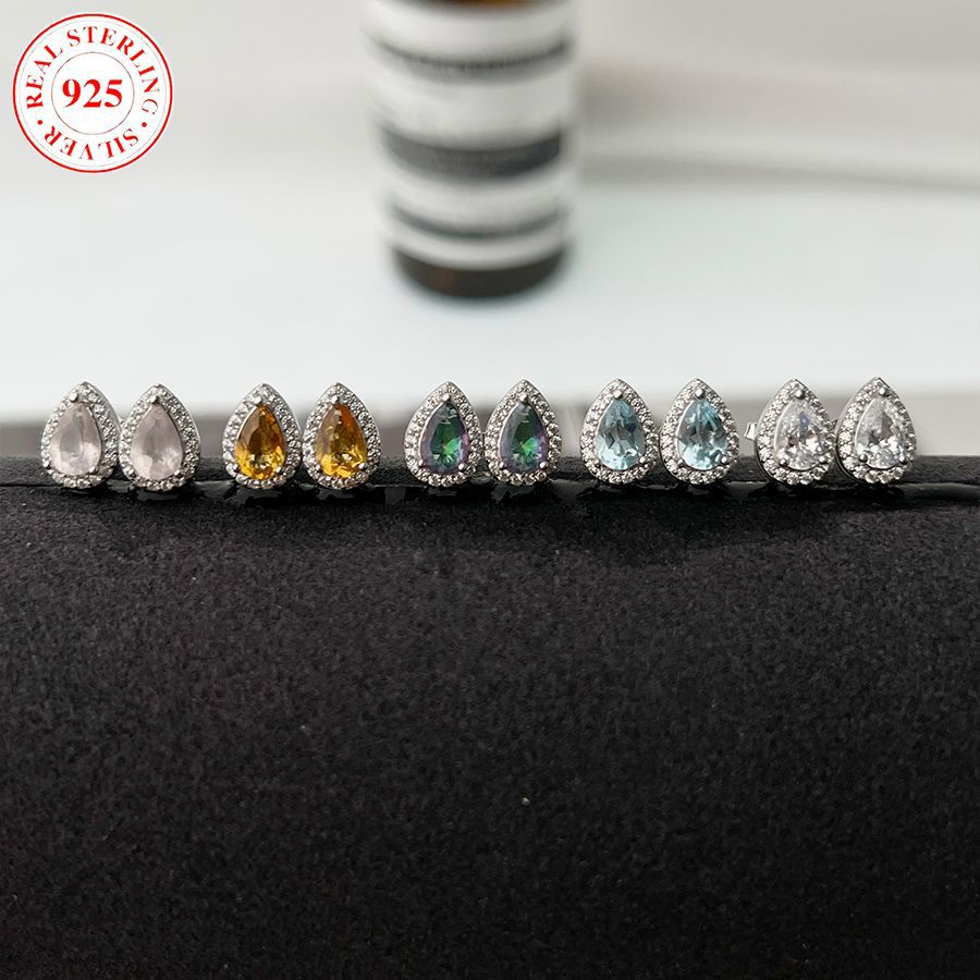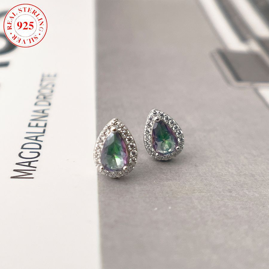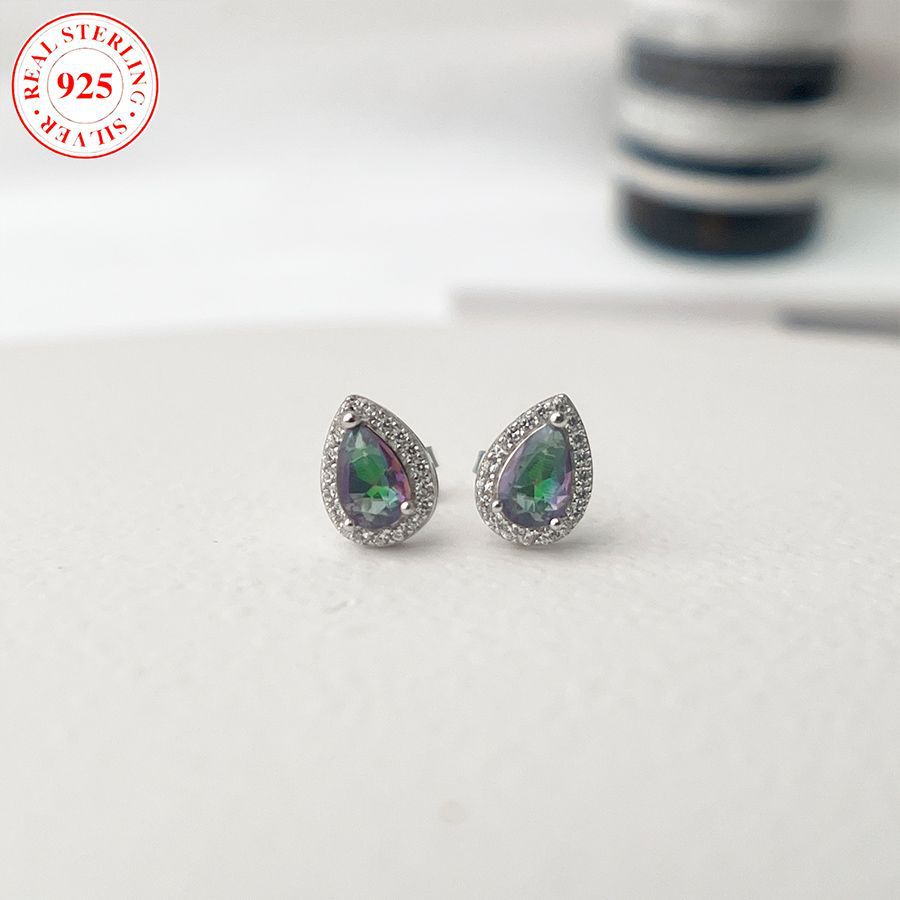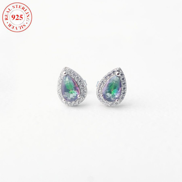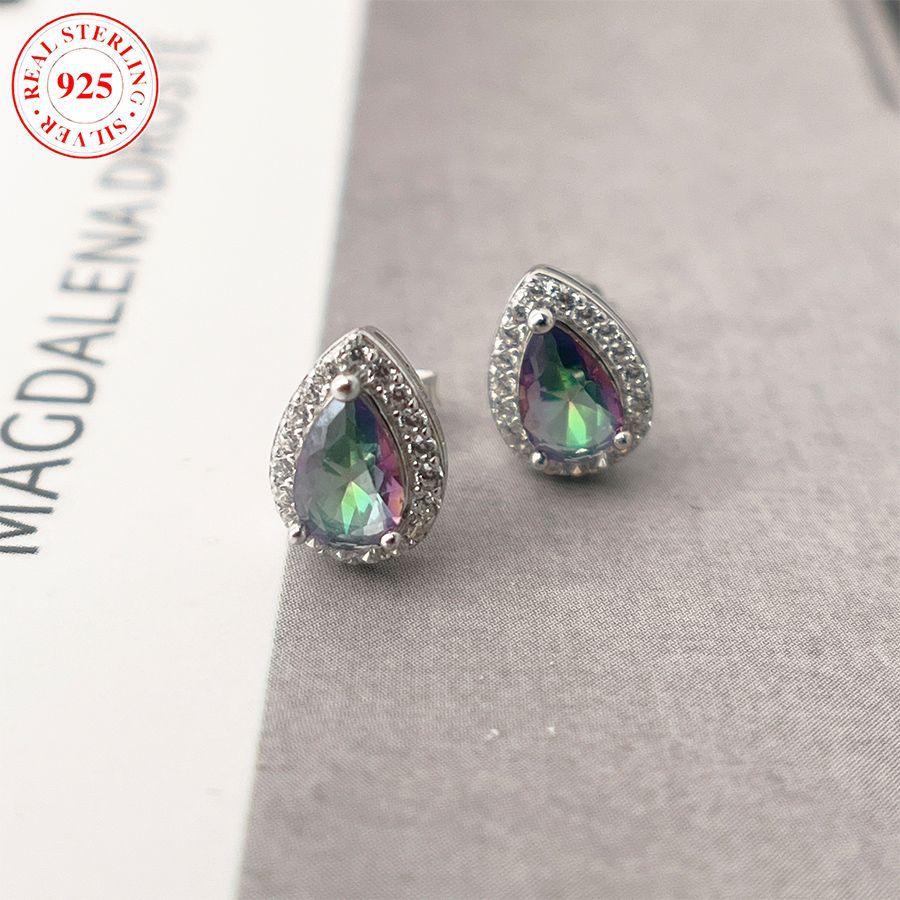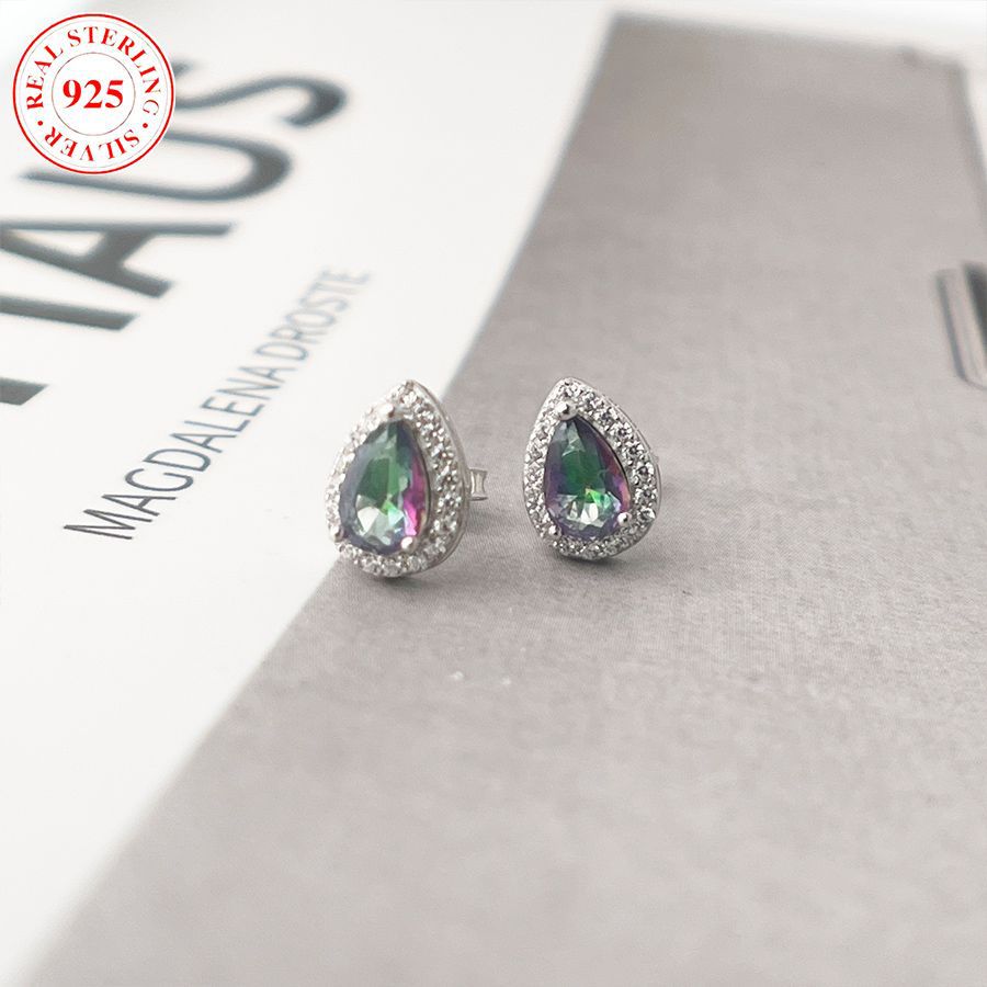 歐美風新款七彩色白鋯水滴形耳飾氣質百搭時尚女925銀耳釘