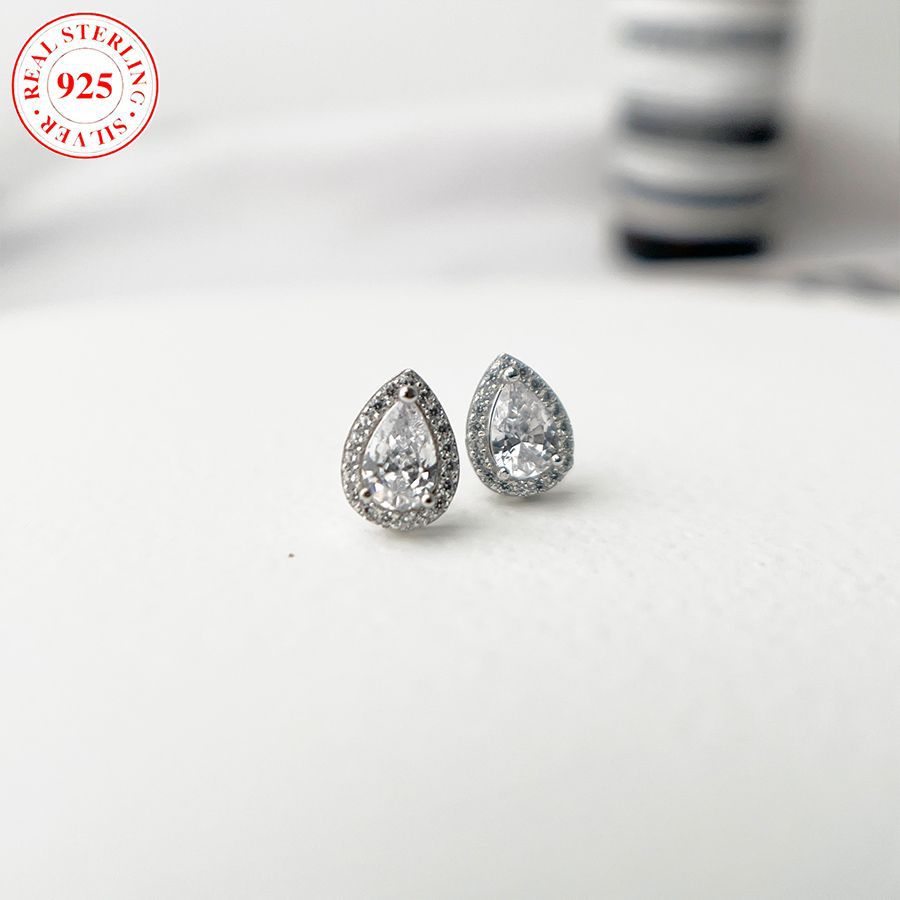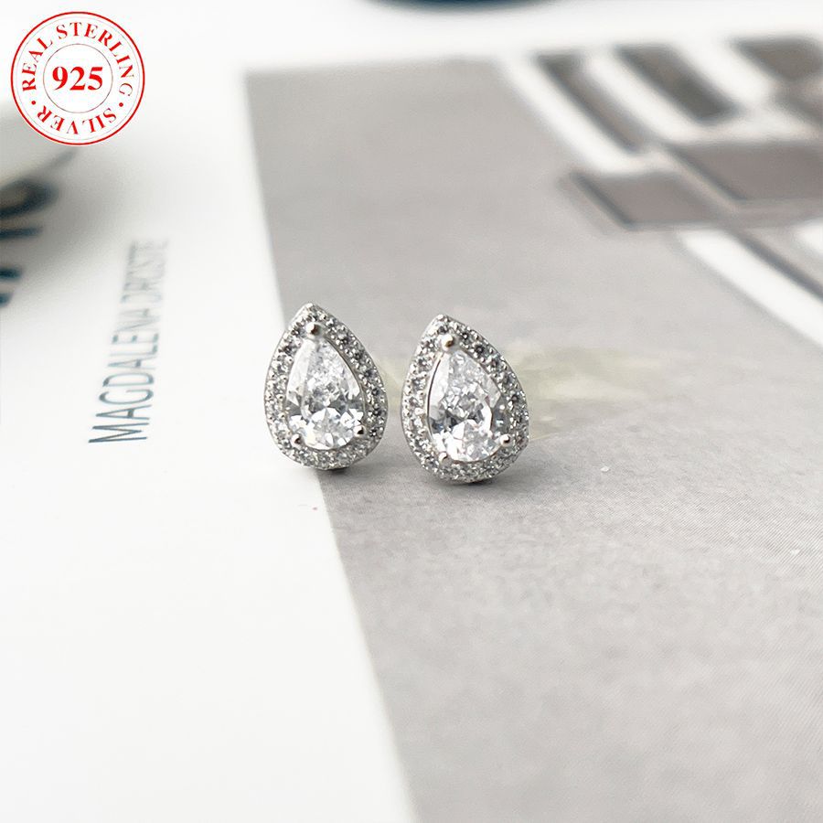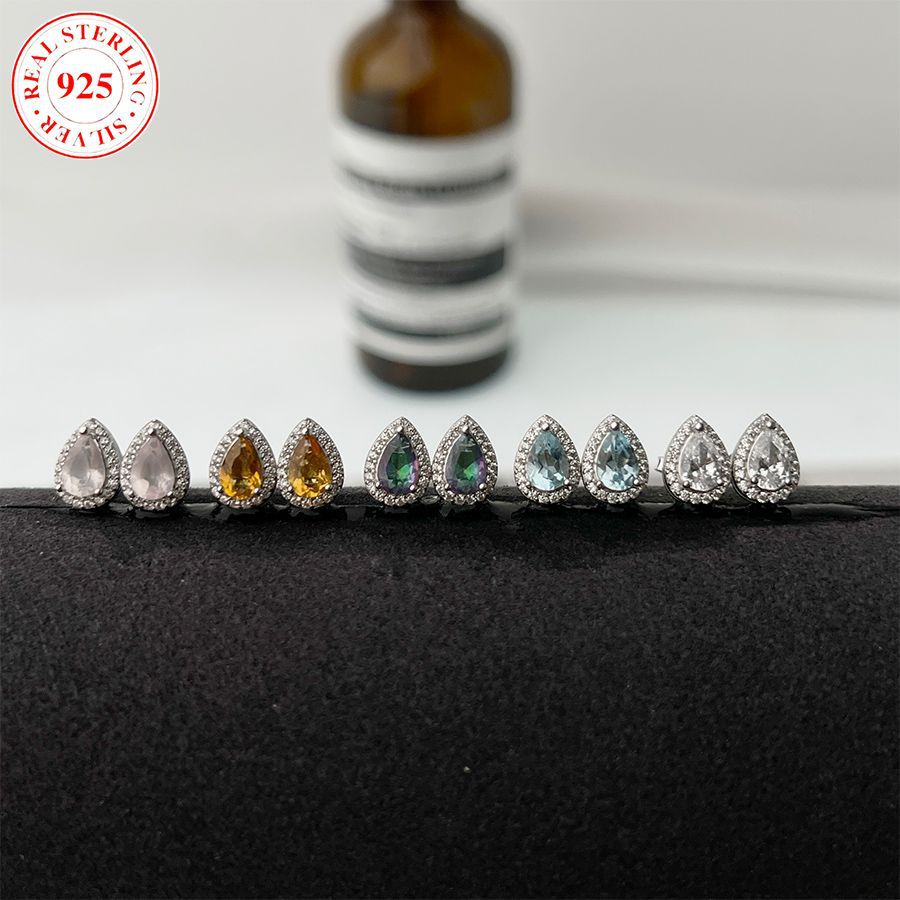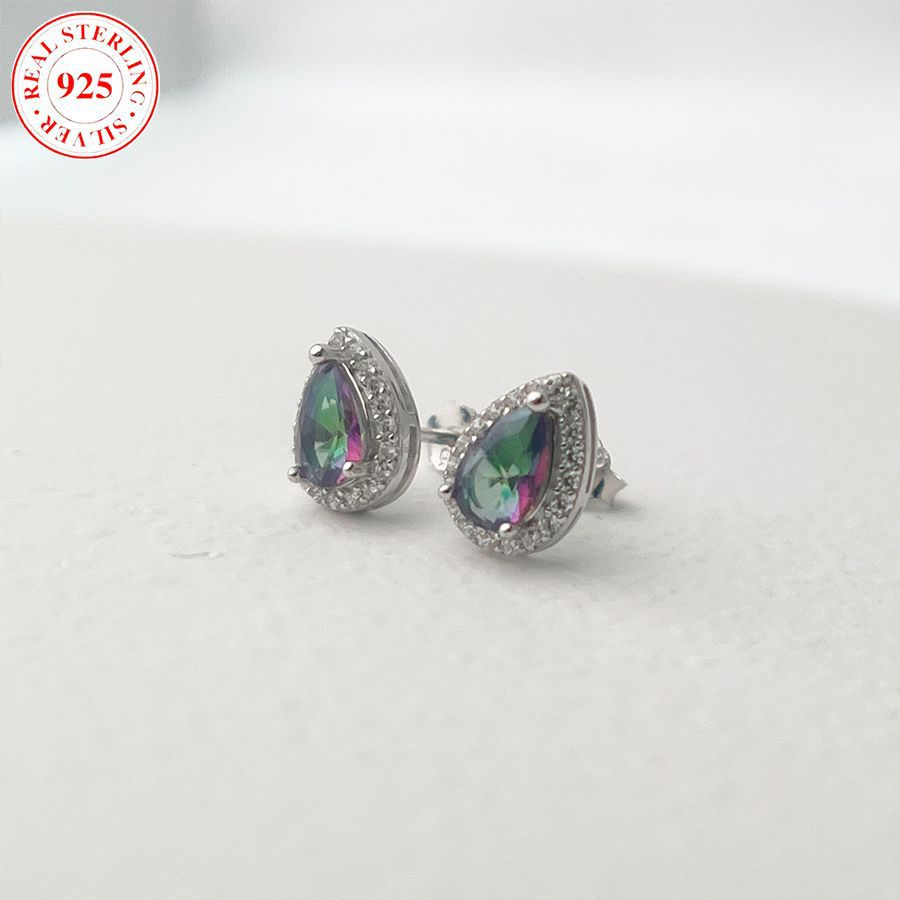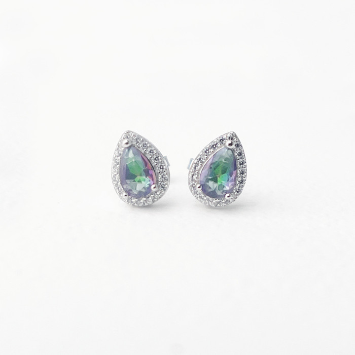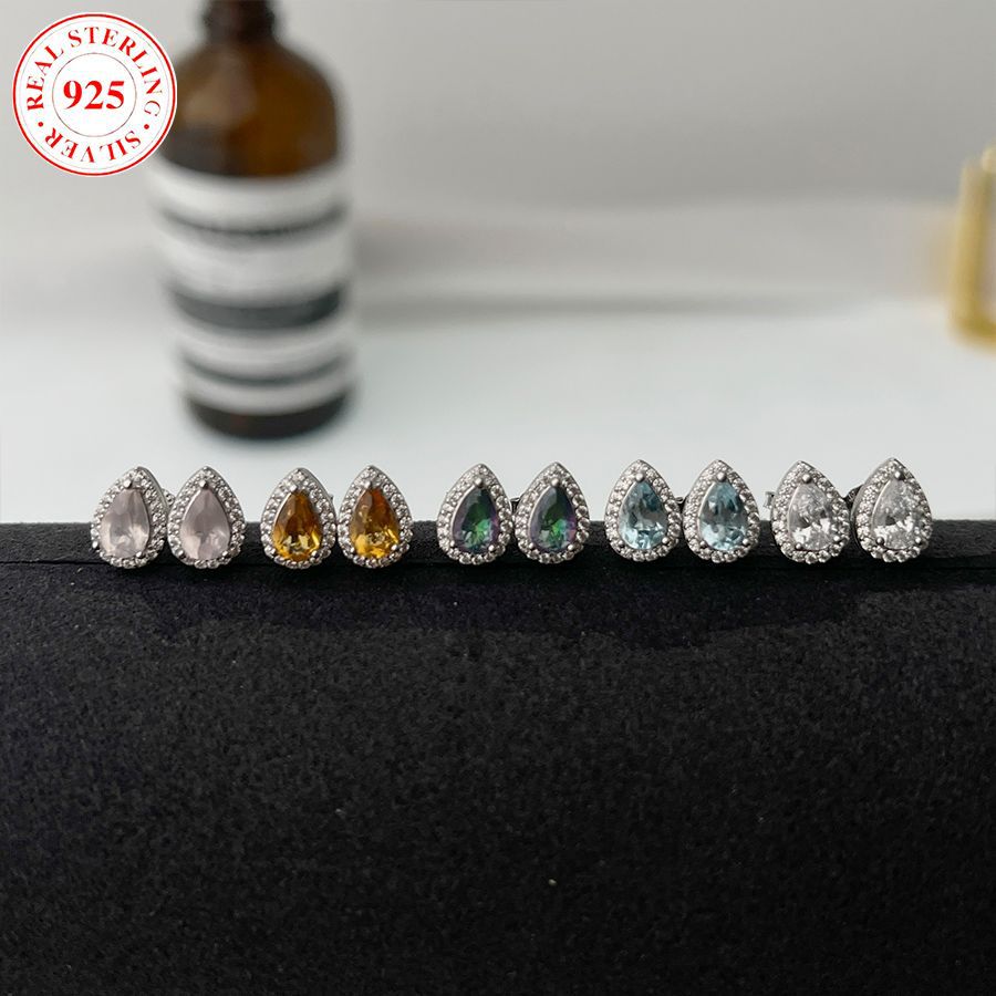 歐美風新款七彩色白鋯水滴形耳飾氣質百搭時尚女925銀耳釘