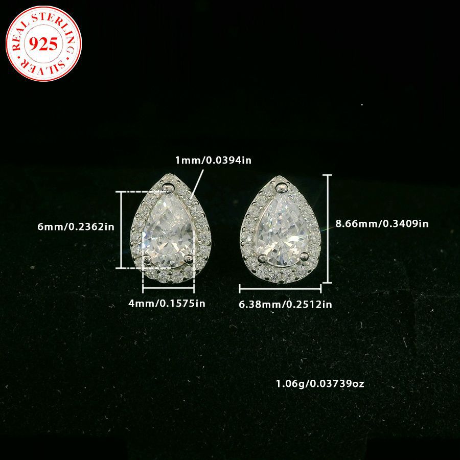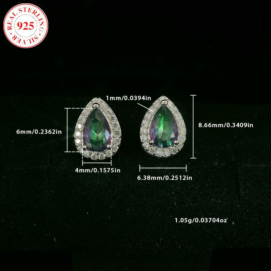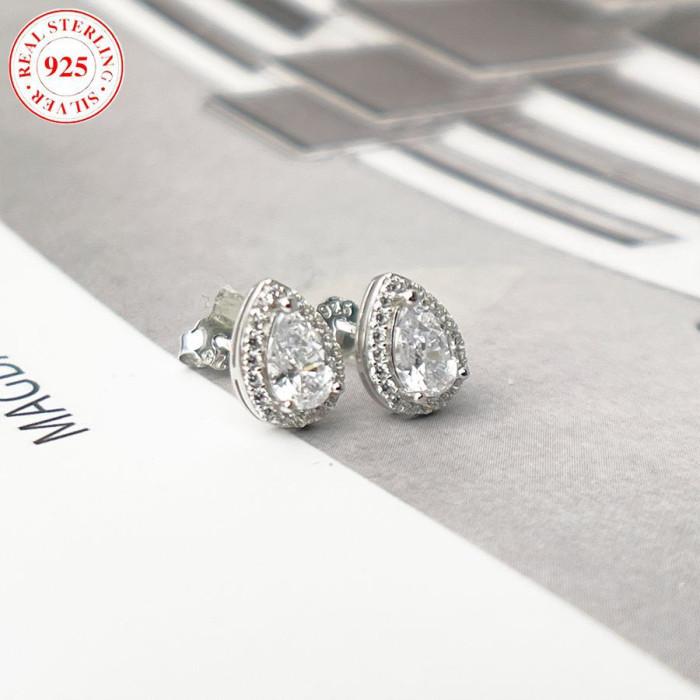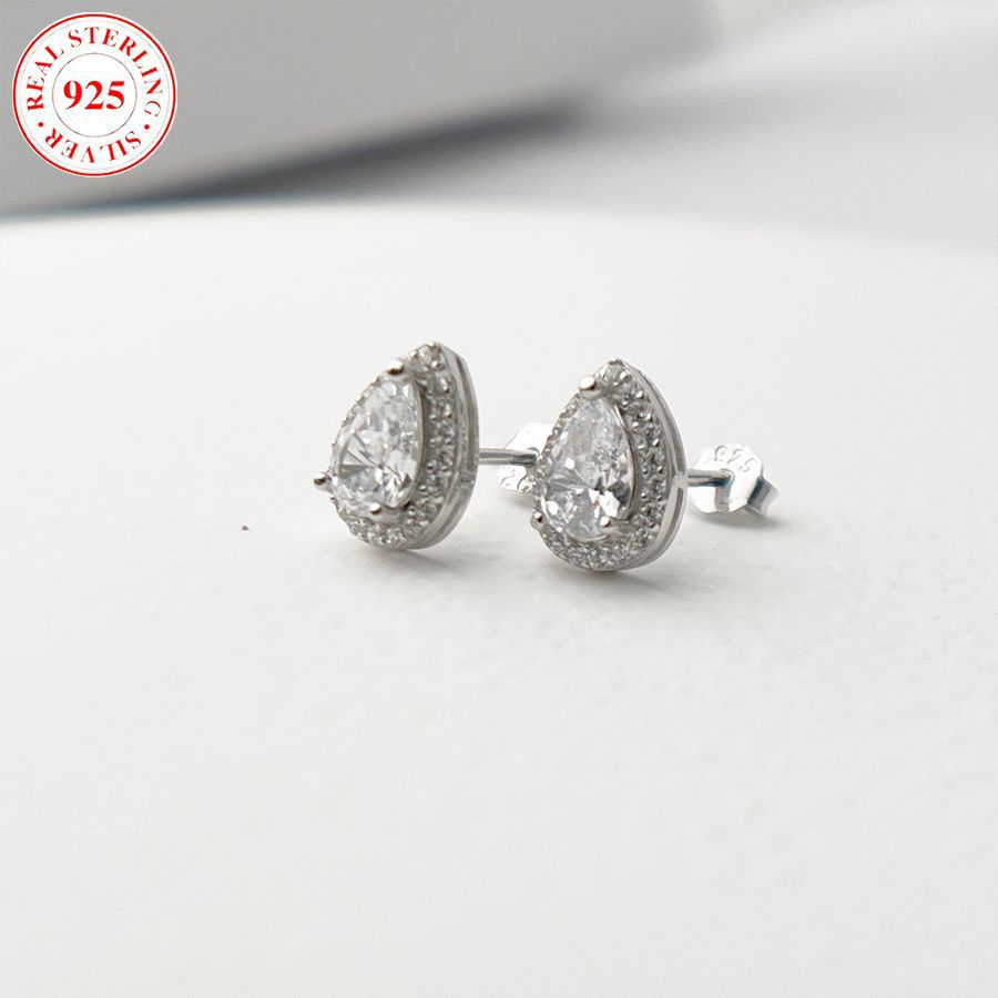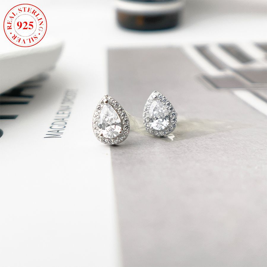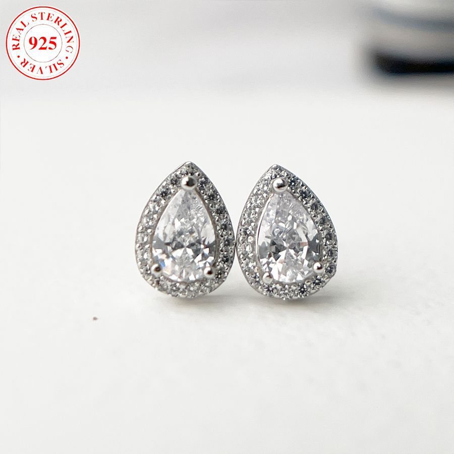 歐美風新款七彩色白鋯水滴形耳飾氣質百搭時尚女925銀耳釘