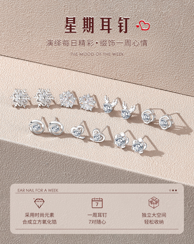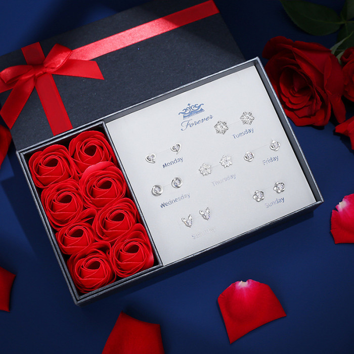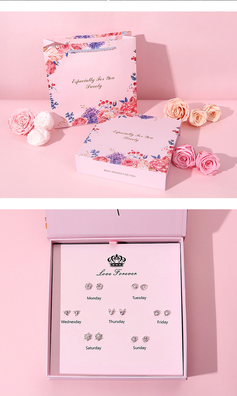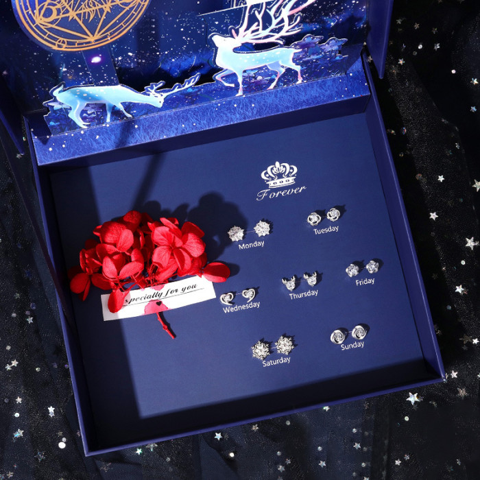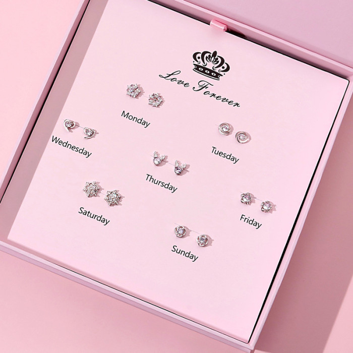 925純銀一周一星期耳釘女純銀七對耳環七夕情人節禮物實用禮盒裝