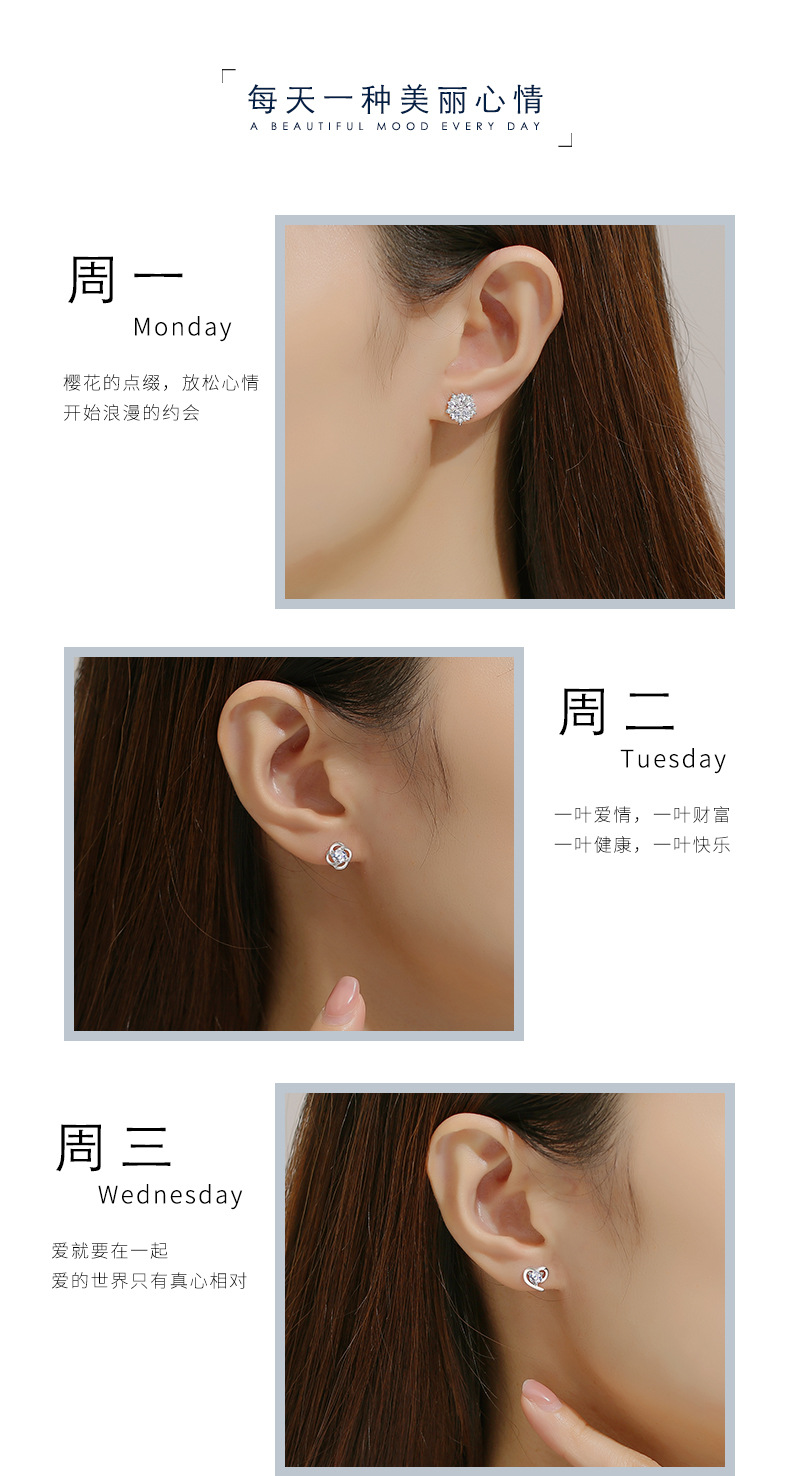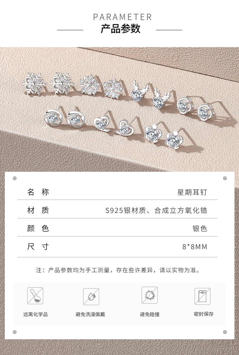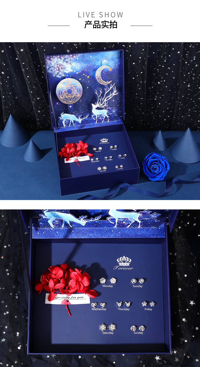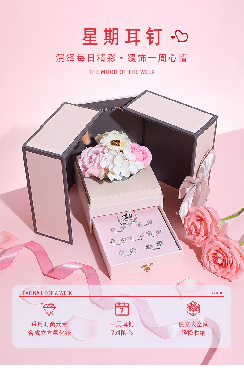 925純銀一周一星期耳釘女純銀七對耳環七夕情人節禮物實用禮盒裝