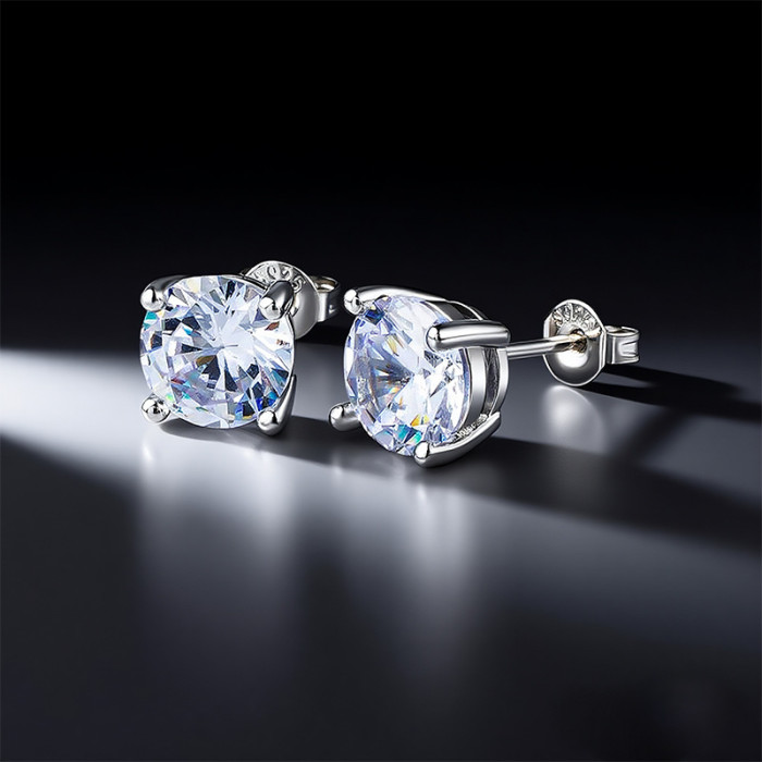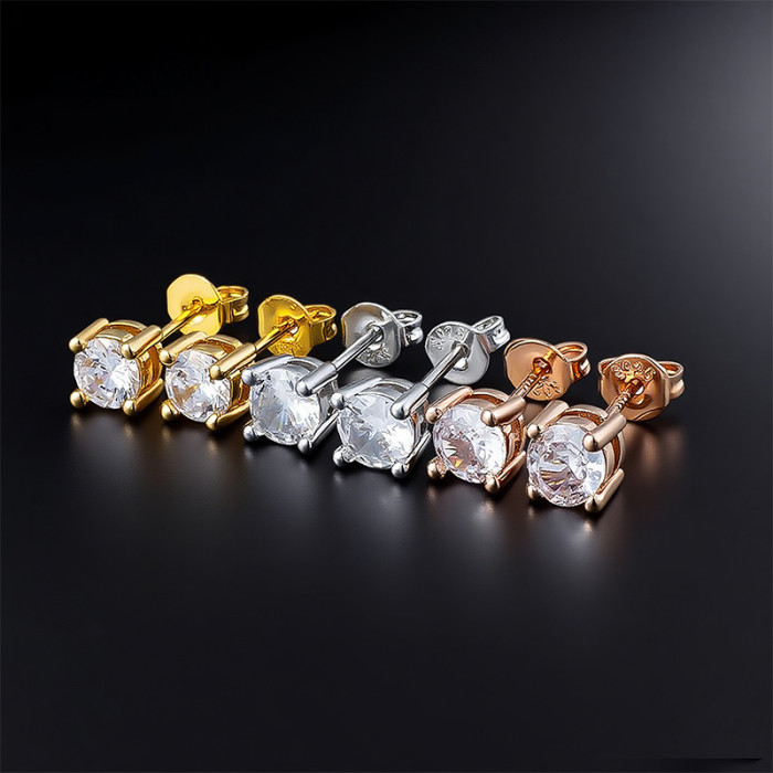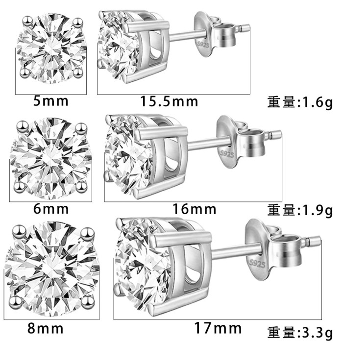 優雅奢華耳釘爪鑲鋯石925銀耳飾飾品女男