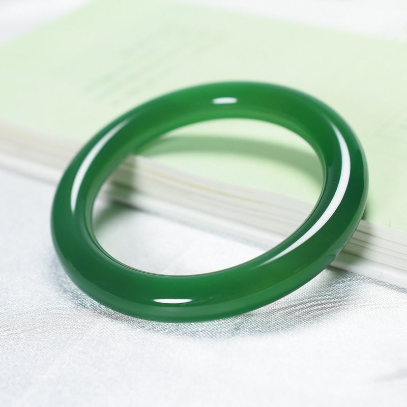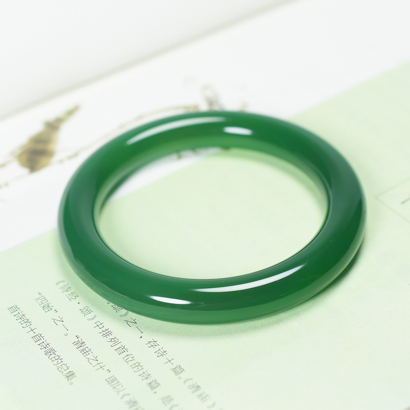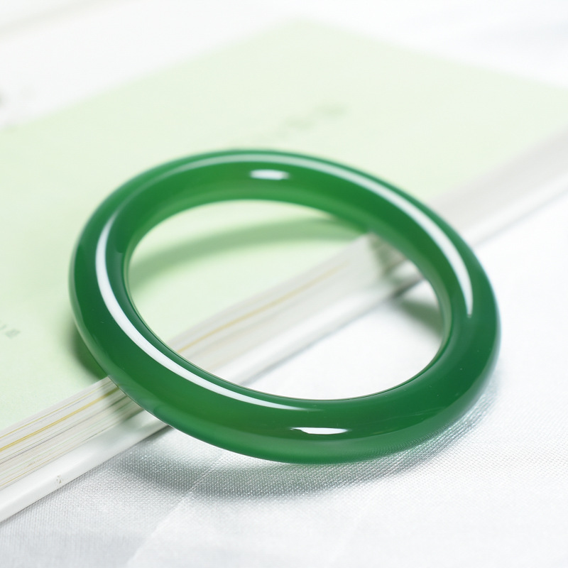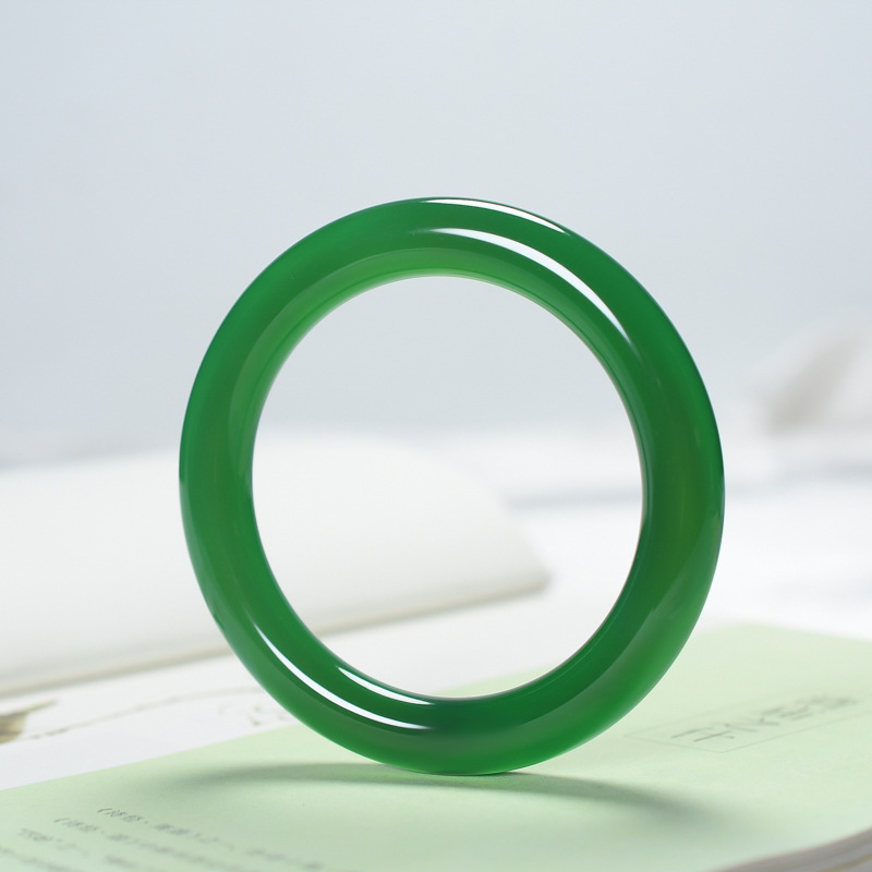 天然瑪瑙冰種翡翠色綠玉髓手鐲女正圈圓條美人鐲玉鐲帝王綠平安鐲