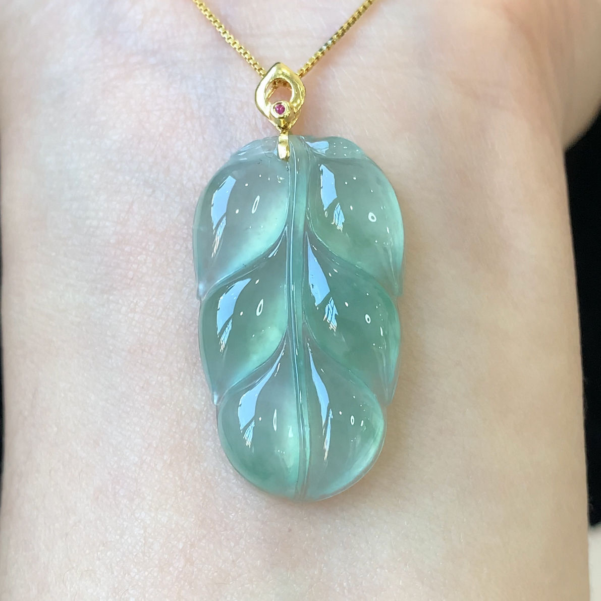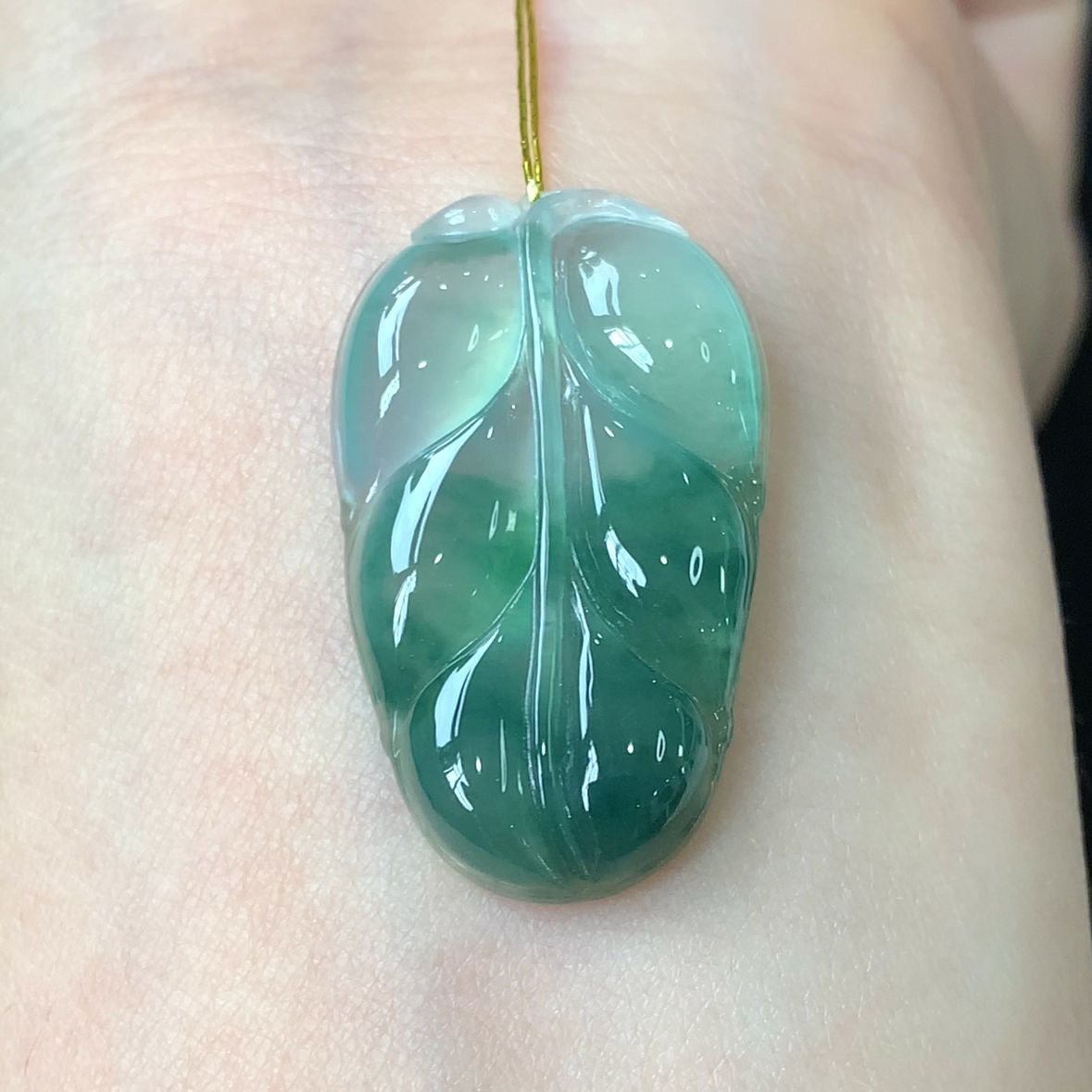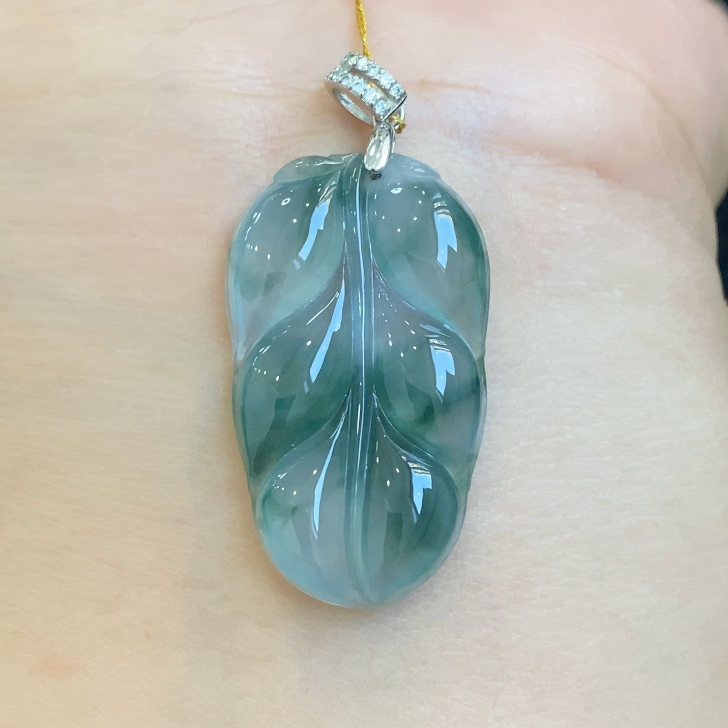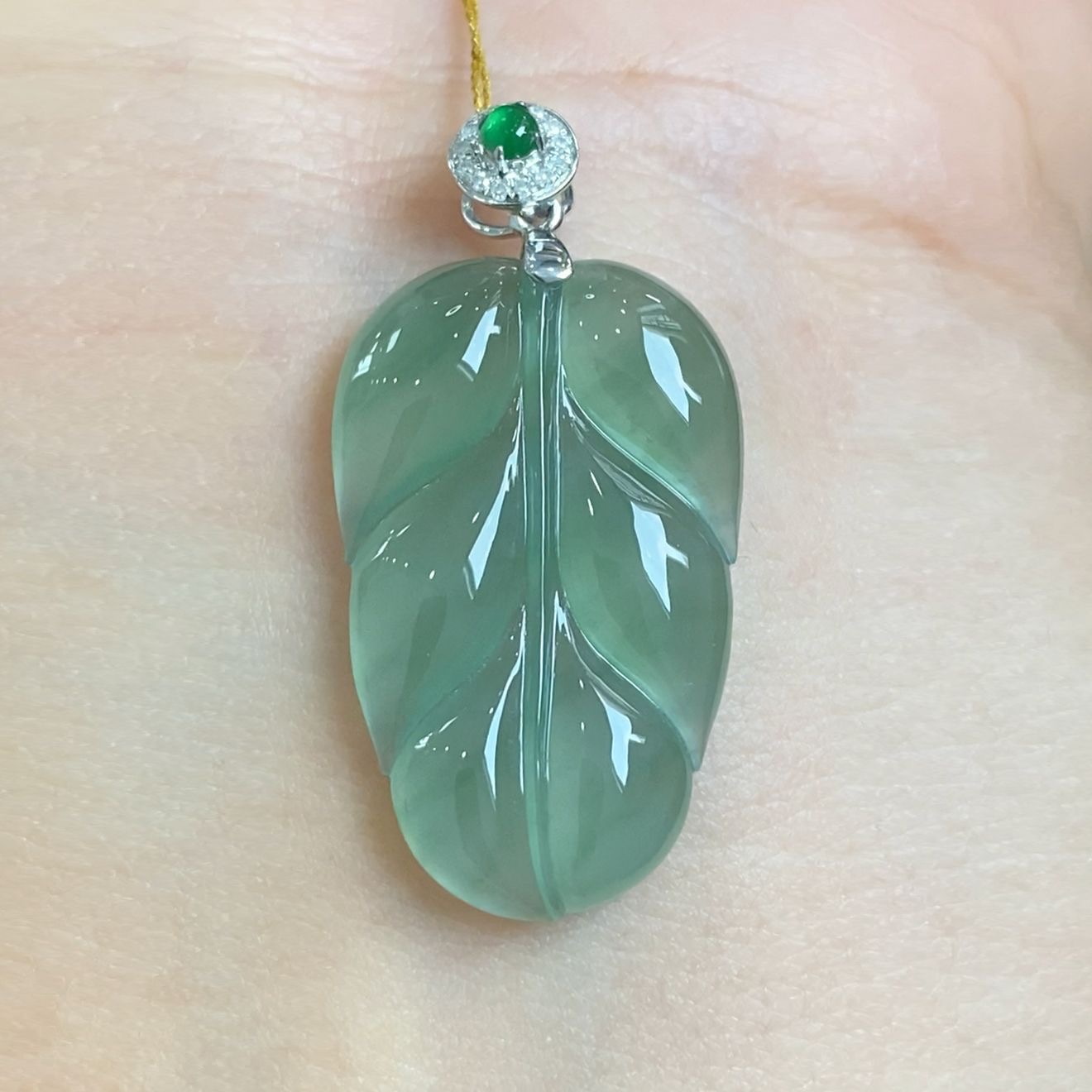 天然緬甸老坑冰種飄花樹葉子翡翠吊墜鑲嵌玻璃種掛件金枝玉葉男女