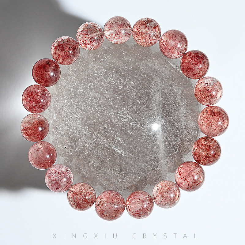 天然水晶花瓣草莓晶手鏈女招桃花白水體手串流行飾品學生生日禮物