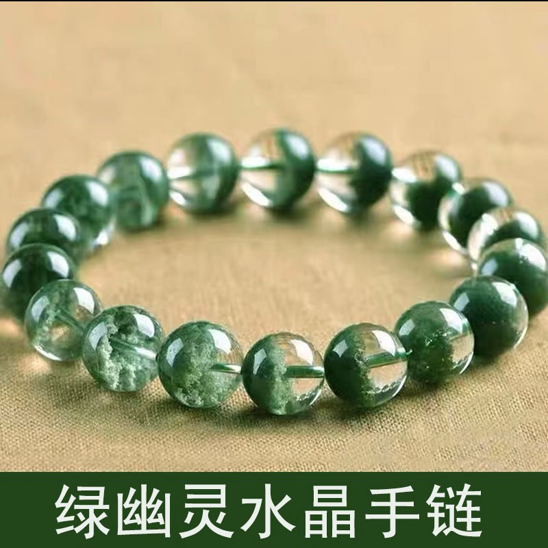 天然綠幽靈水晶手鏈男女綠水晶招財聚寶盆半盆幽靈千層滿天星手串