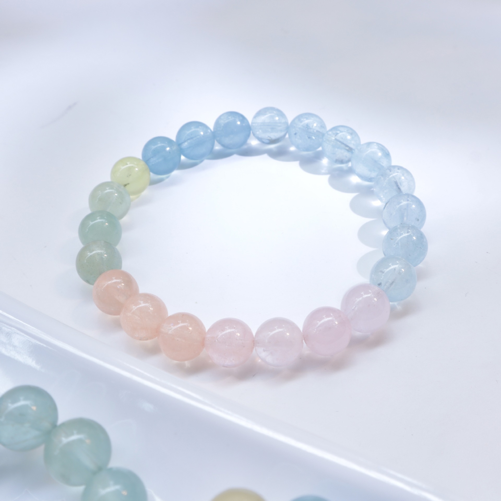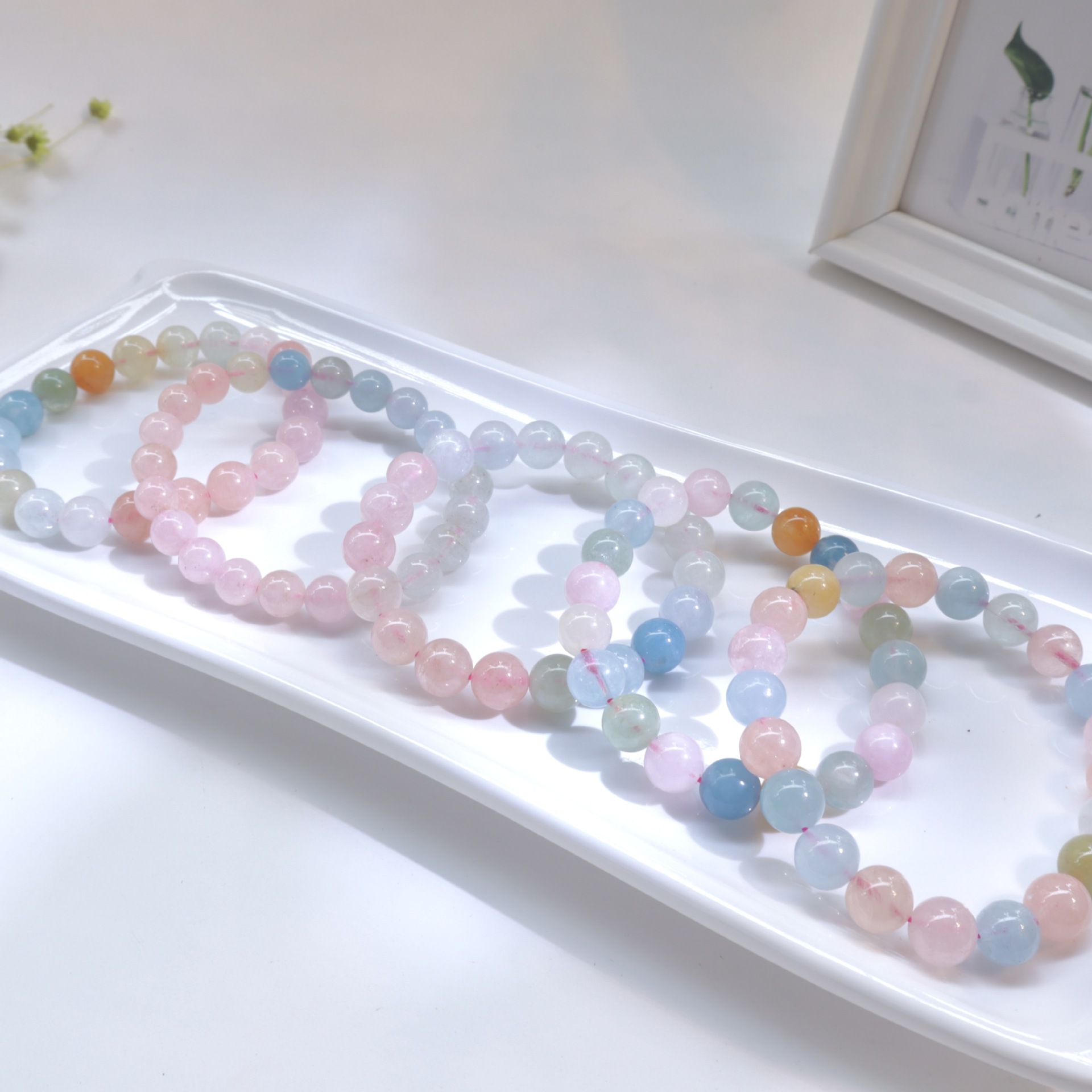 天然摩根石手鏈女款馬卡龍彩虹漸變摩根石手串女夏季飾品