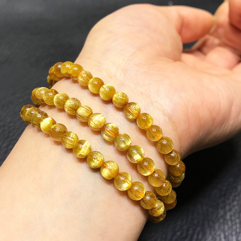 天然鈦晶多圈手鏈板鈦金髮晶手鏈三圈黃水晶順發貓眼石男女款彿珠