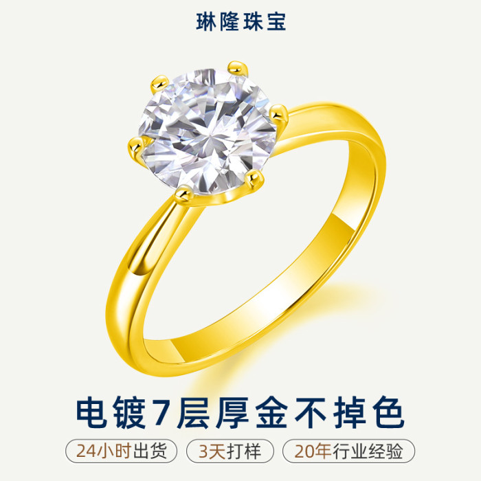 莫桑鑽戒指 六爪戒子s925銀金色簡約戒子