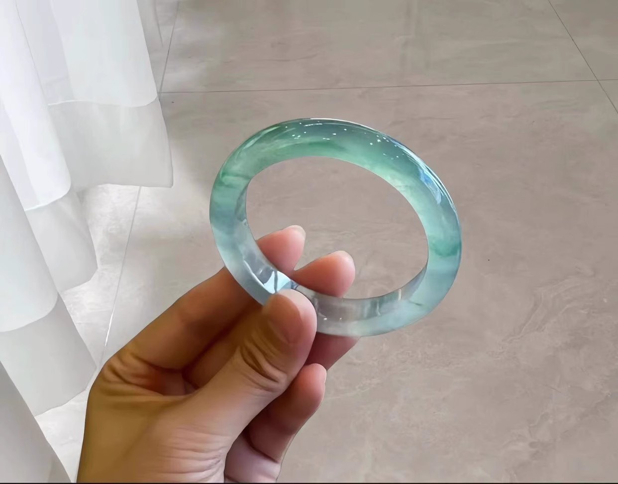 冰種翡翠玉石飄花玉手鐲天然緬甸天山翠高冰圓條玉鐲子吊墜貴妃鐲