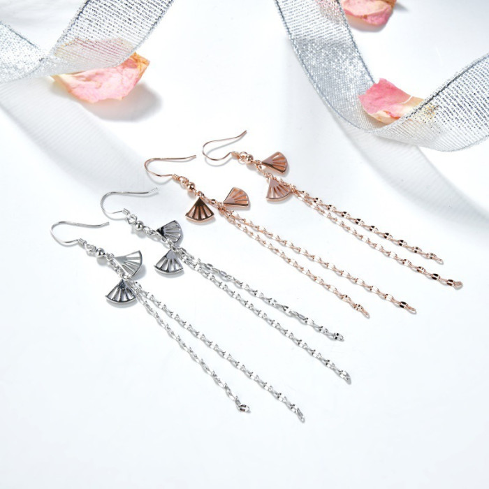 貝殼銀杏葉長款耳鉤-玫瑰金色