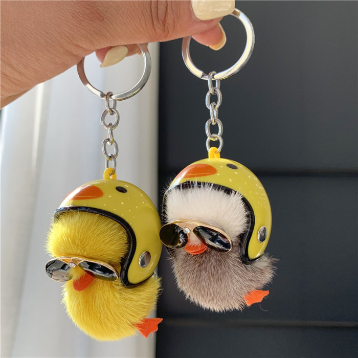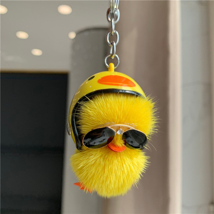 仿水貂小鴨子毛絨掛件手工皮草鑰匙扣可愛書包掛件毛絨小飾品