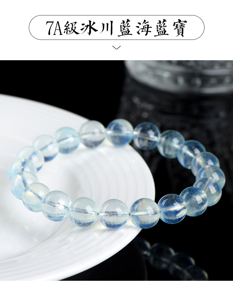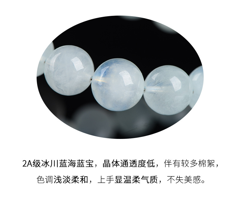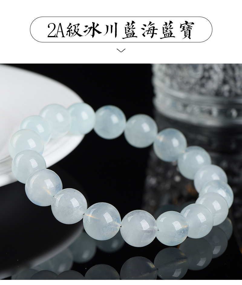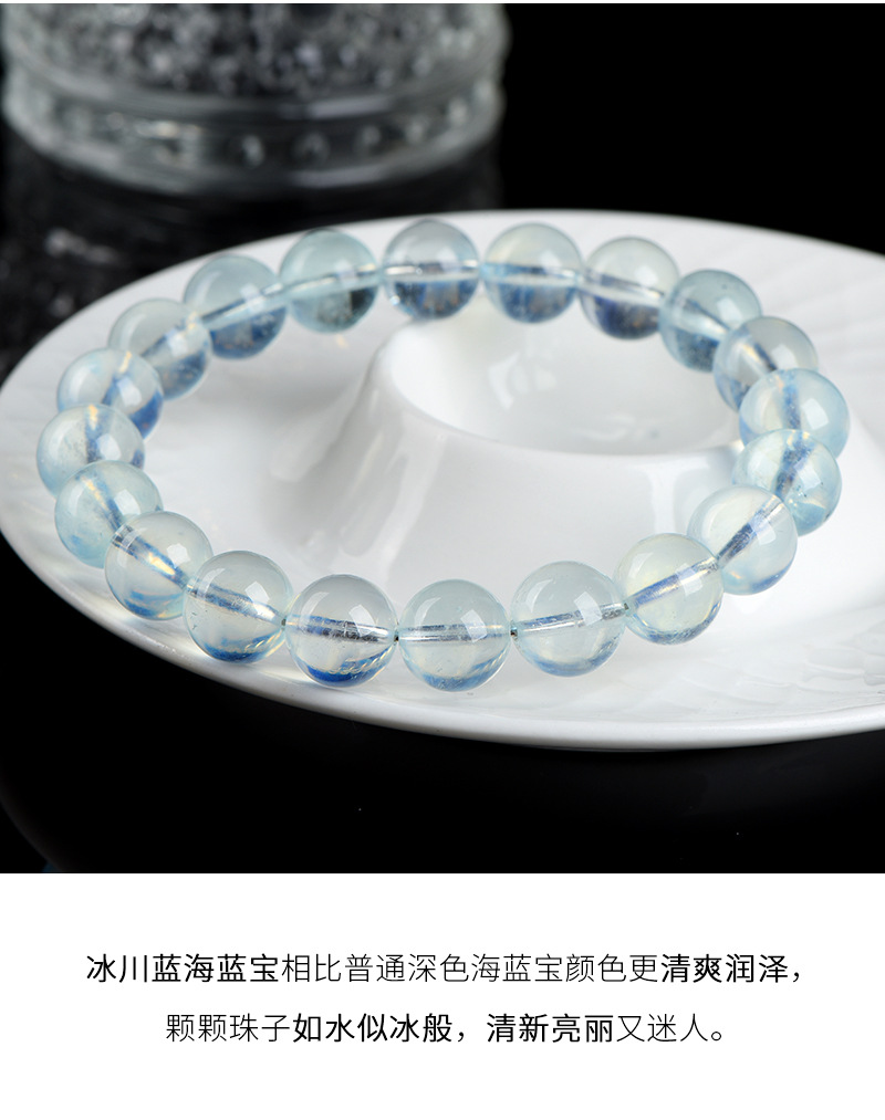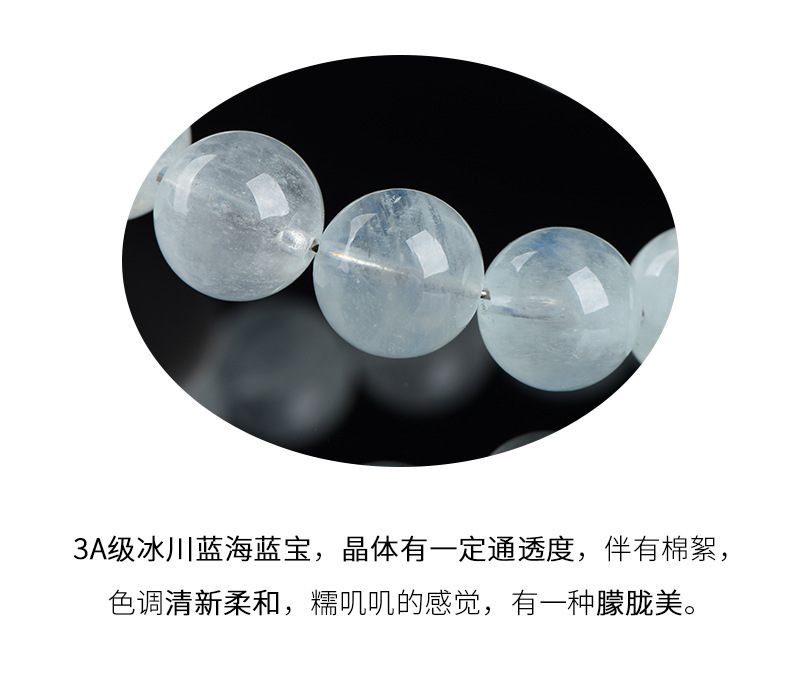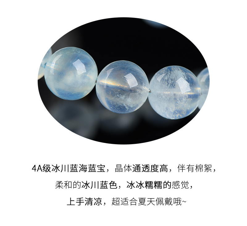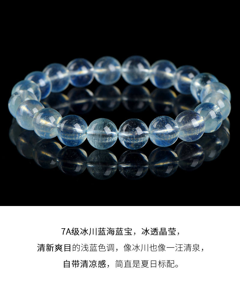久雅水晶 天然7A級冰川海藍寶圓珠手鏈 冰川勵志料海藍寶石手串