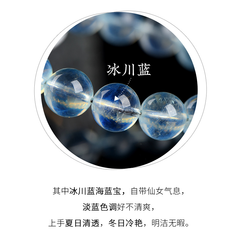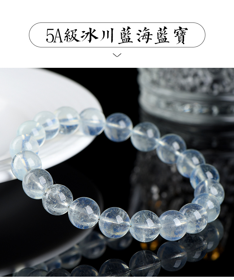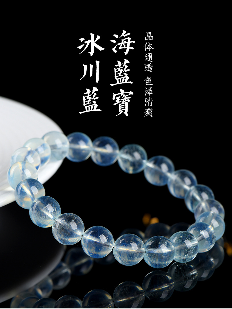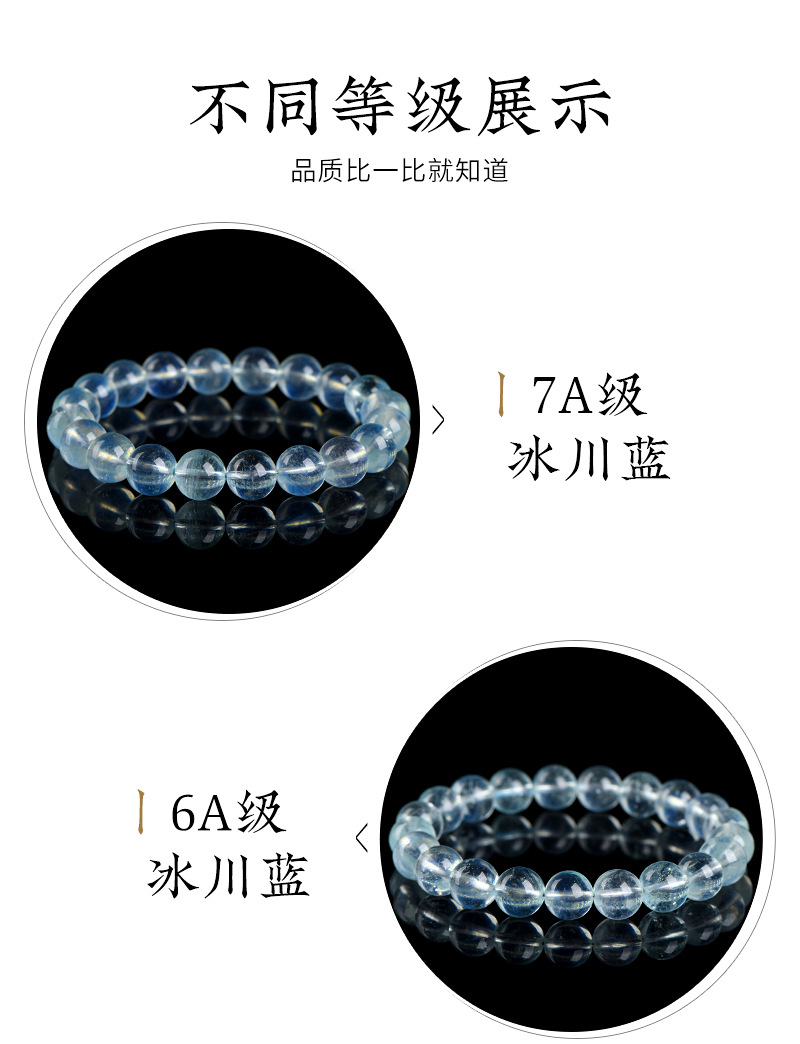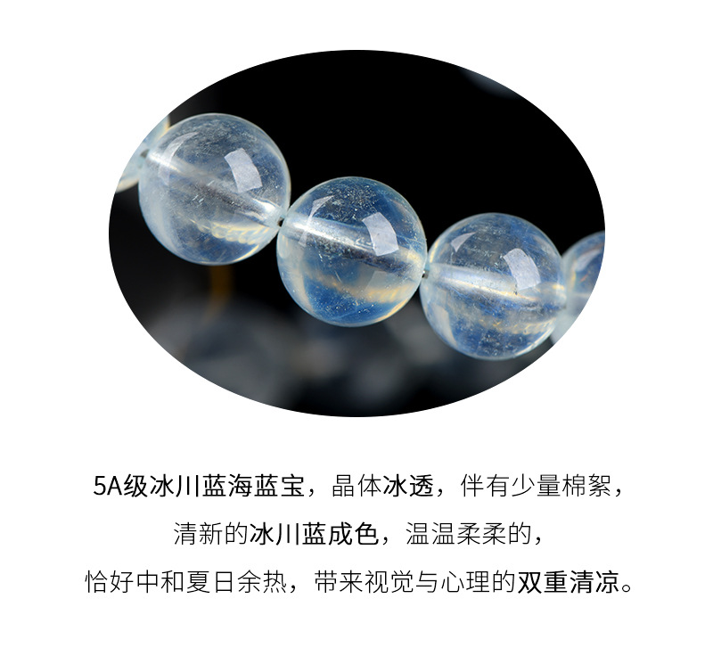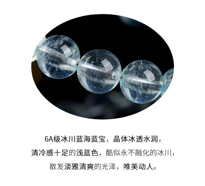 久雅水晶 天然7A級冰川海藍寶圓珠手鏈 冰川勵志料海藍寶石手串