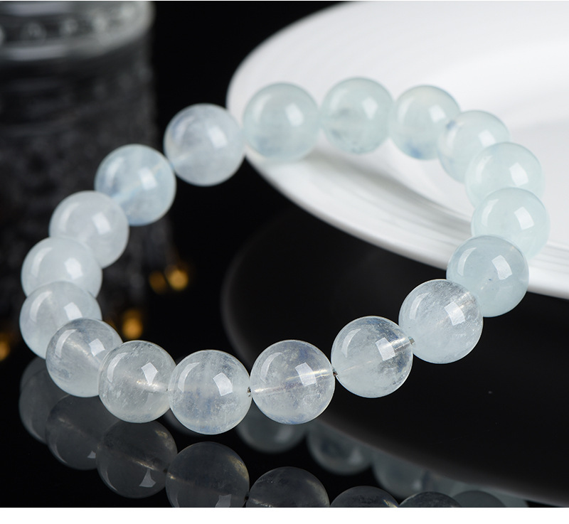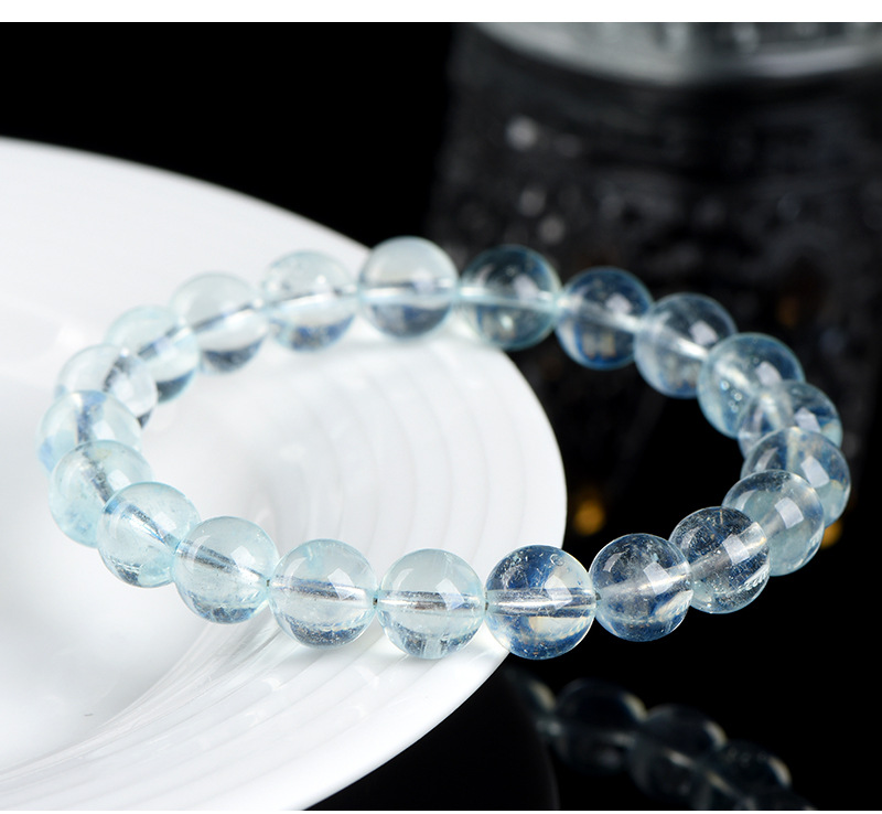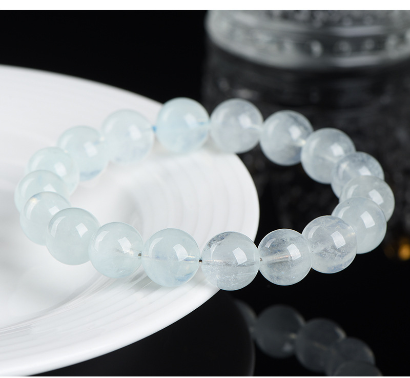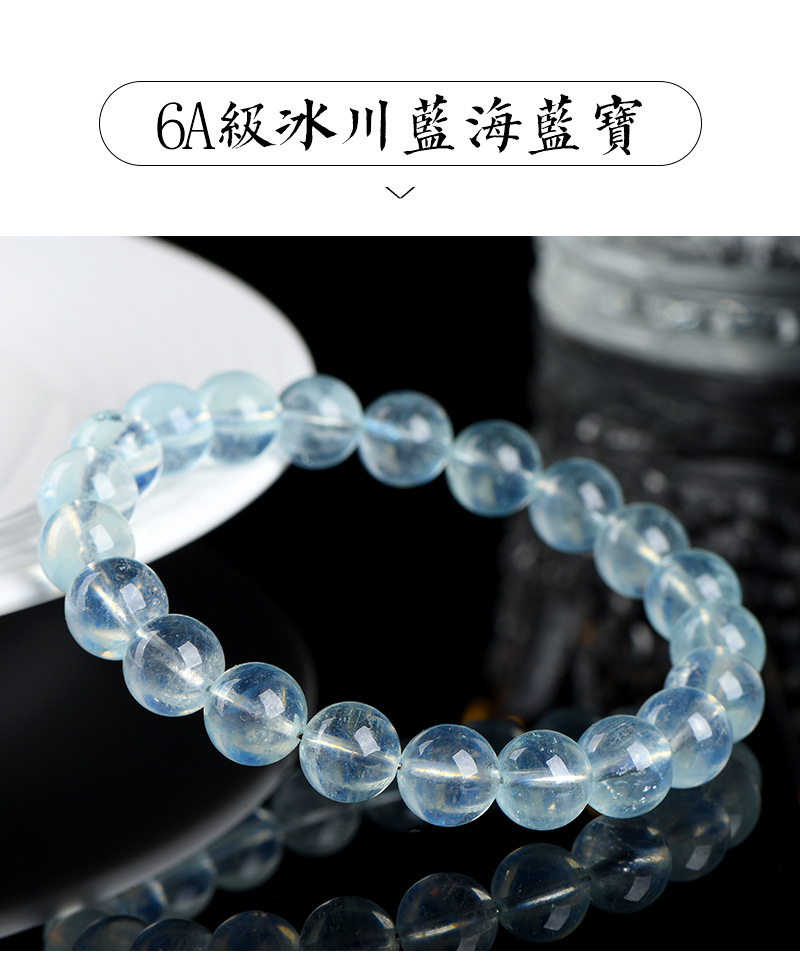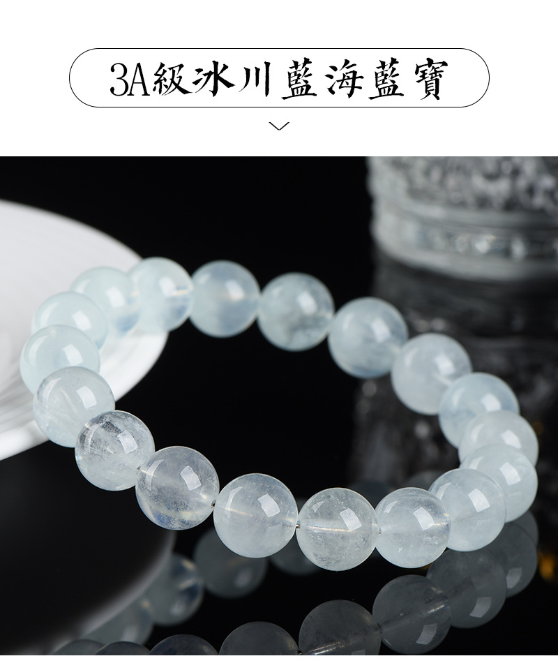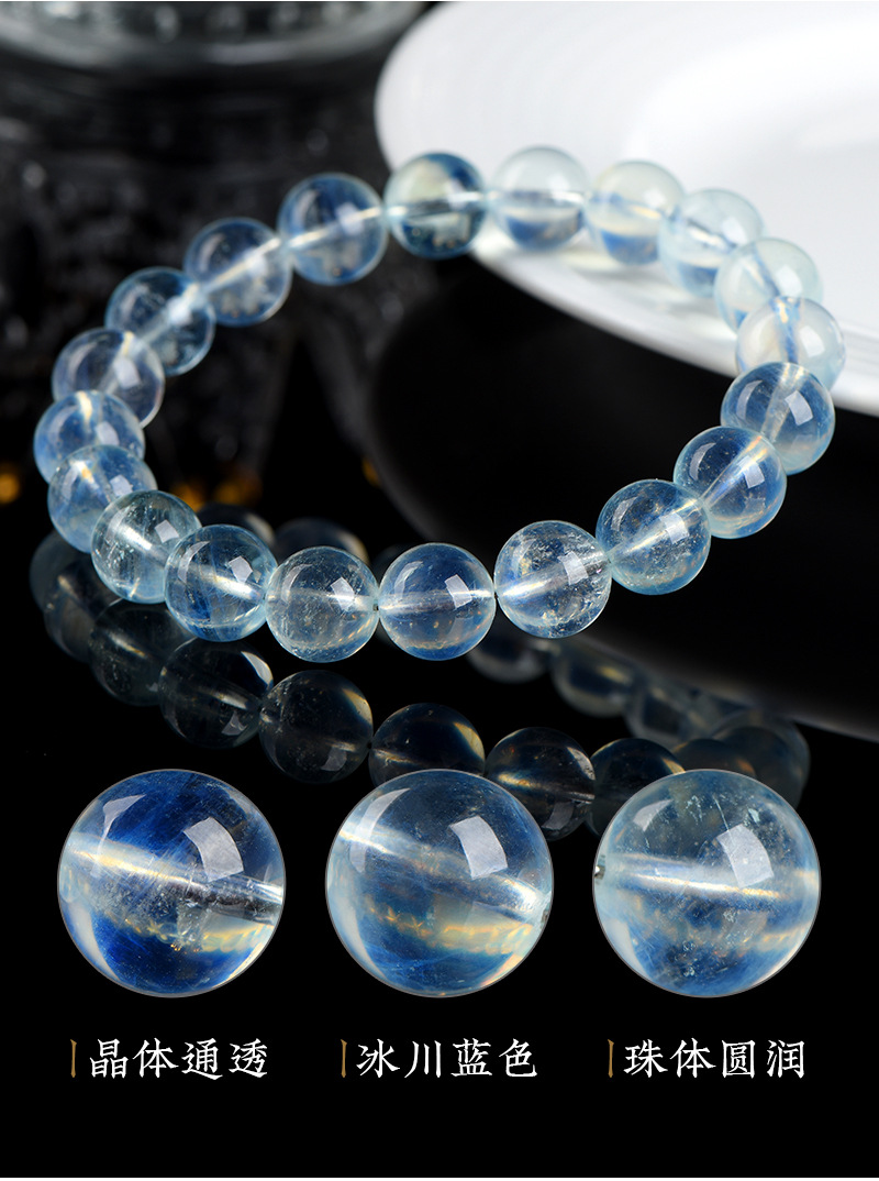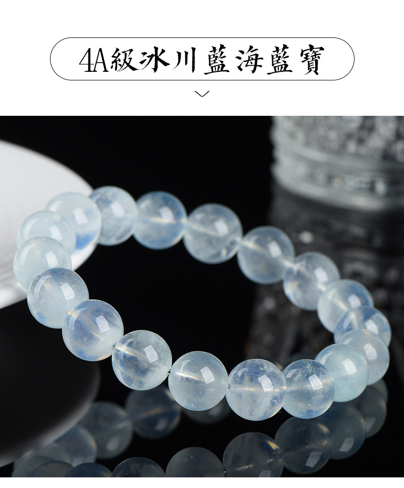 久雅水晶 天然7A級冰川海藍寶圓珠手鏈 冰川勵志料海藍寶石手串