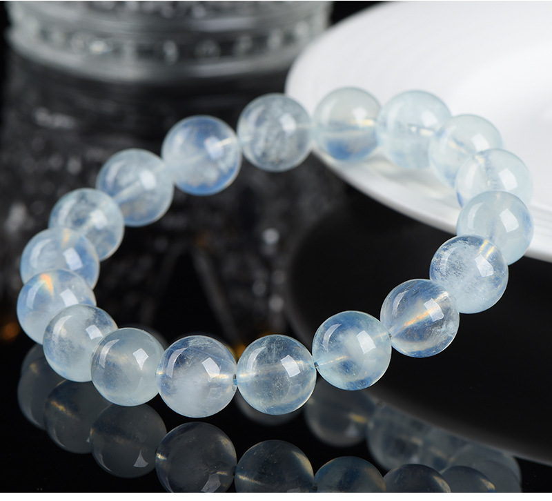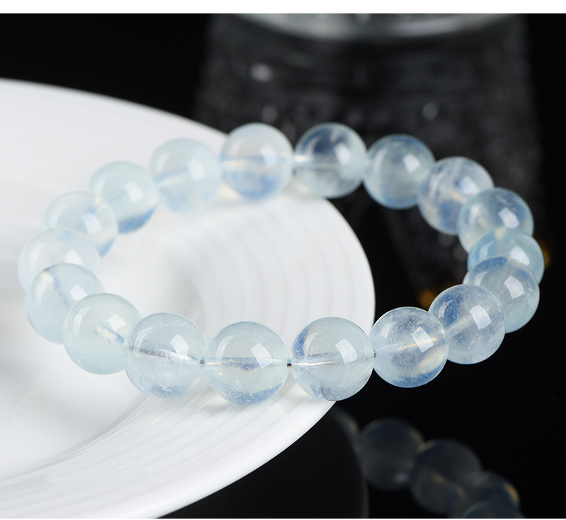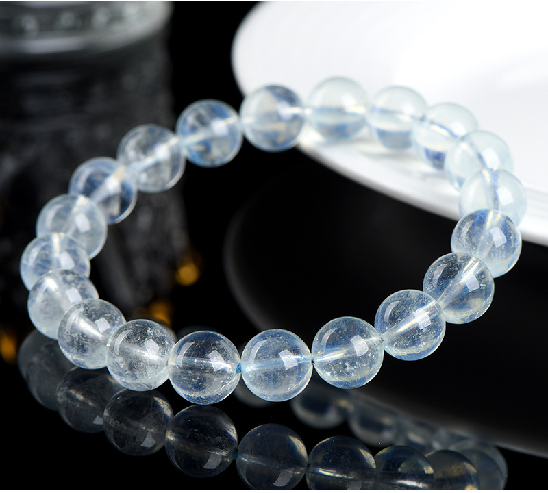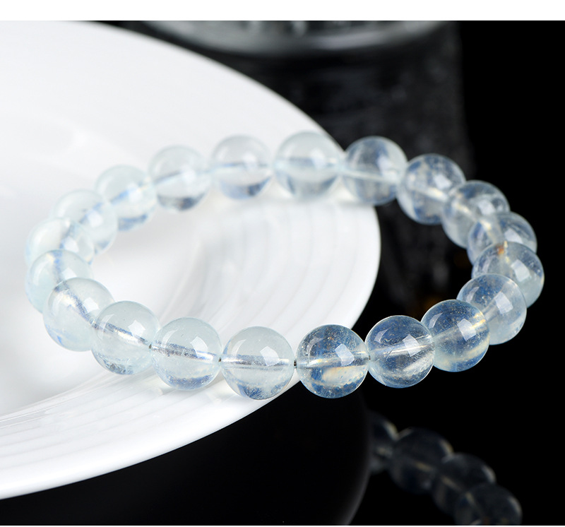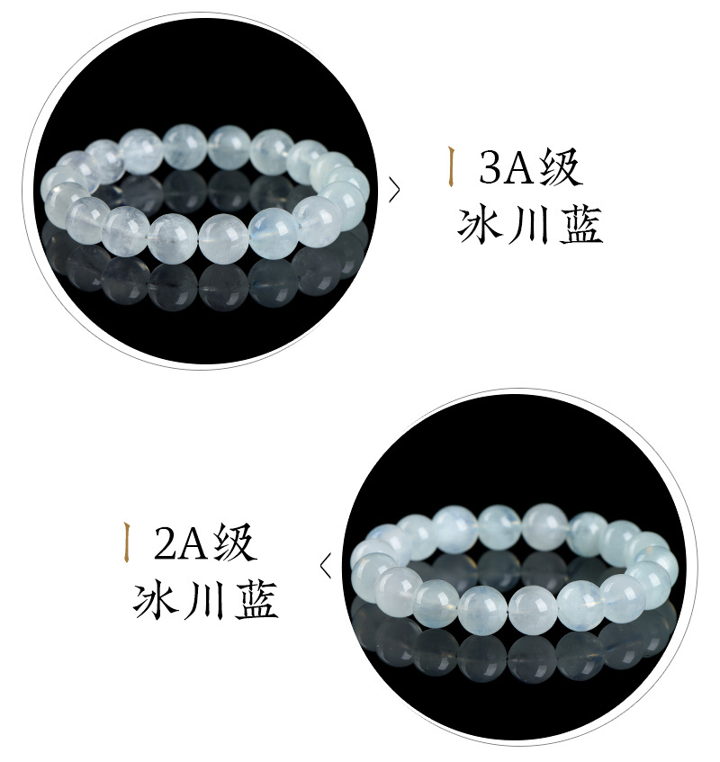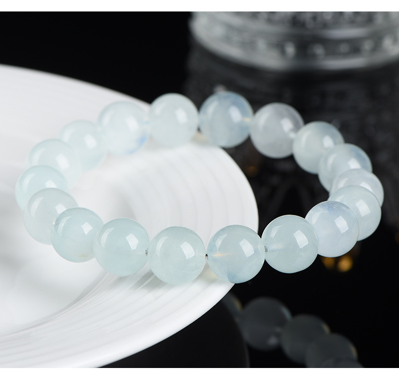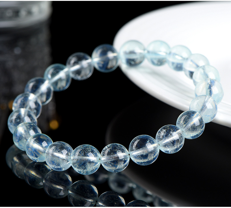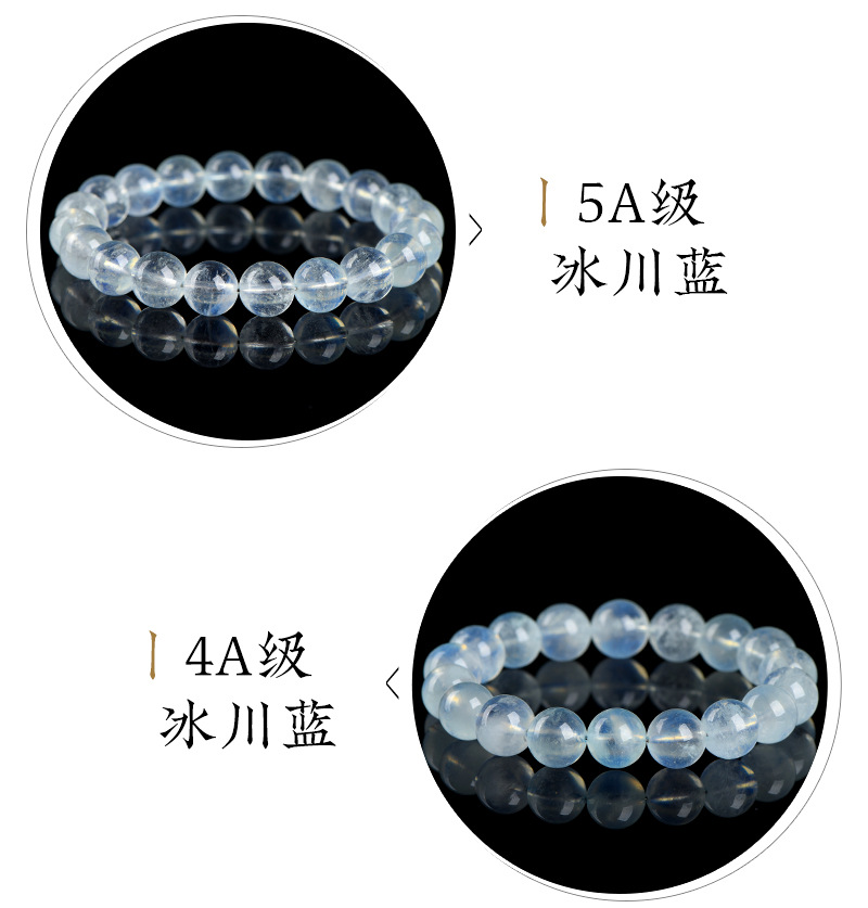 久雅水晶 天然7A級冰川海藍寶圓珠手鏈 冰川勵志料海藍寶石手串